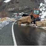 Şırnak’ın Beytüşşebap ilçesinde dağlardan kopan dev kaya parçaları yola düştü.