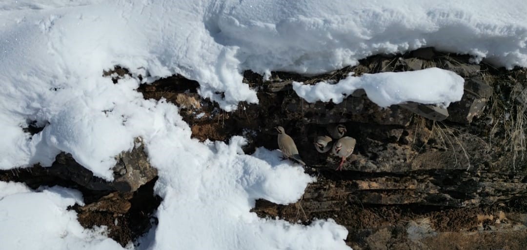 Beytüşşebap ilçesinde kar yağışı sonrası dağlar beyaz örtüyle kaplandı. Yüksek bölgelerden sıcak yerlere akın eden keklik sürüleri dondurucu soğuklarda yiyecek arayışına girdi. Havadan görüntülenen kekliklerin mağara ve kayalık alanları tercih ettiği gözlendi. Dondurucu soğukta birçok yaban hayvanı yiyecek bulmakta zorlandığı için yerleşim yerlerine kadar iniyor.