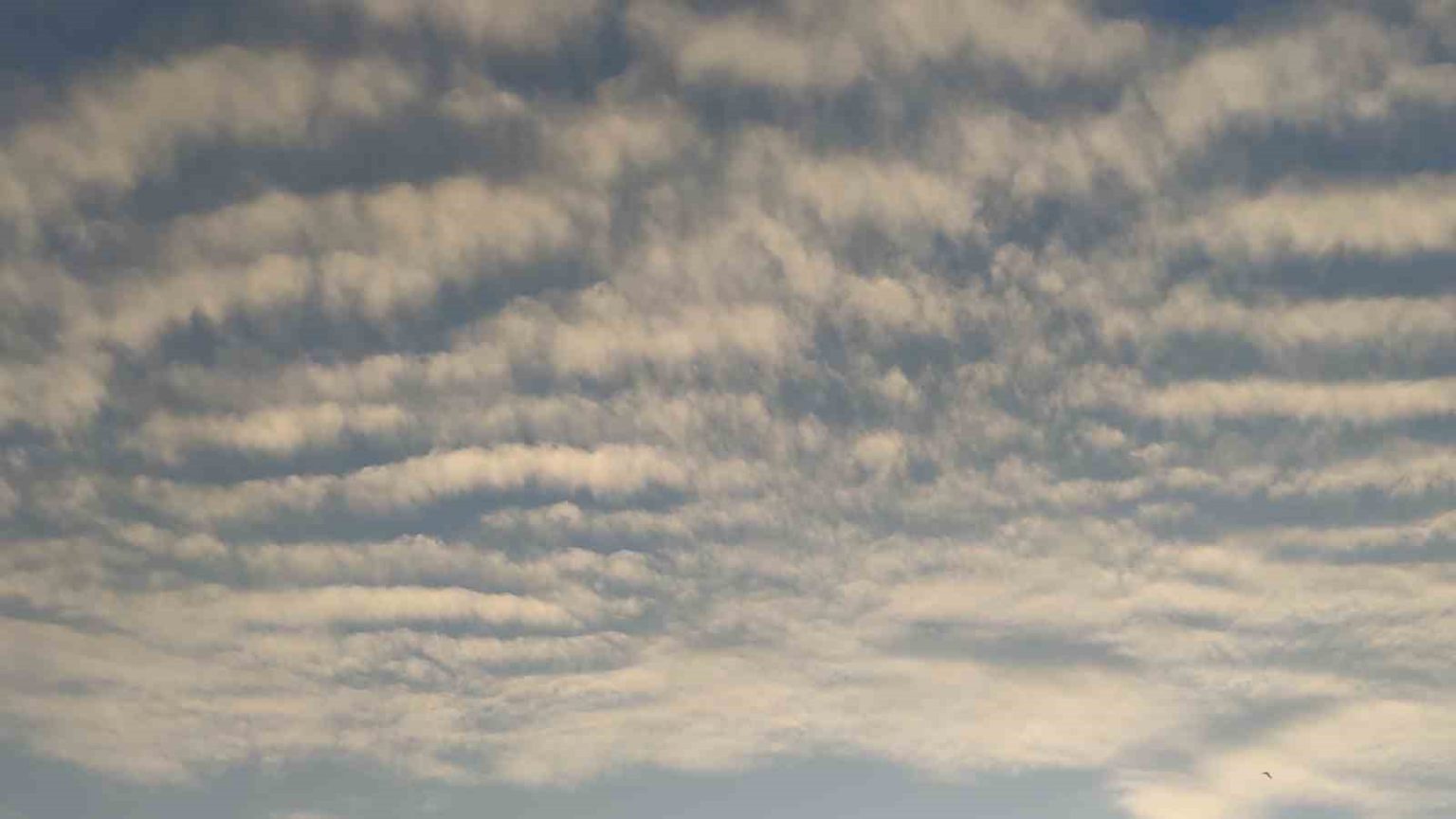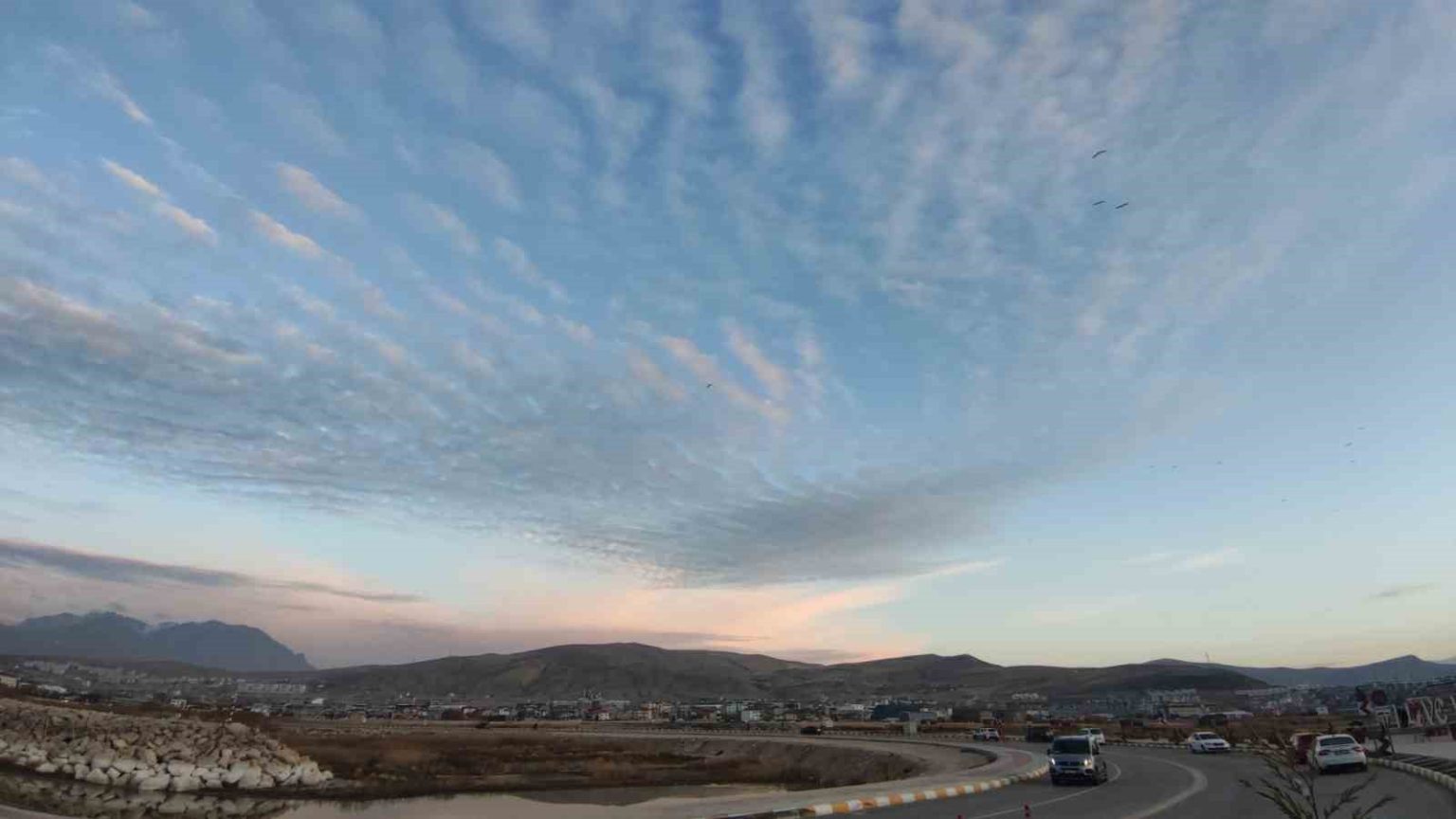 Van’da akşam saatlerinde gökyüzünde belirgin şekilde oluşan sirrokümülüs bulutları, kent semalarını adeta tablo gibi süsledi.