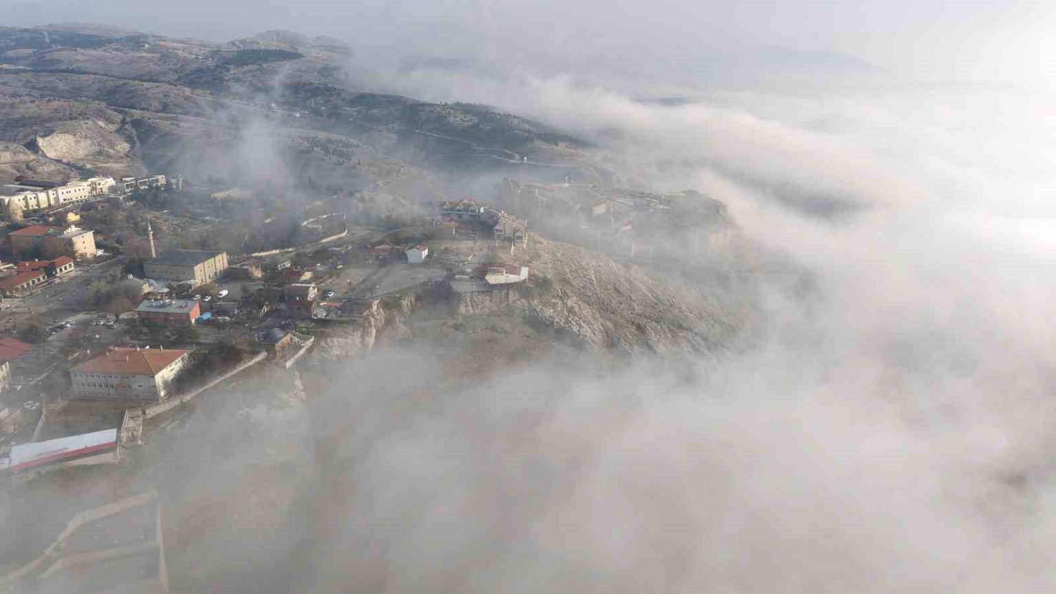 Elazığ’da sabah saatlerinde etkili olan sis, kentin birçok noktasında görüş mesafesini düşürdü. Yoğun sis, özellikle yüksek kesimlerde kartpostallık görüntüler oluşturdu. Sis tabakası dron ile havadan görüntülendi. Tarihi Harput Mahallesi’nde Elazığ’ın kuşbakışı görünümünde sisin yer yer dağıldığı ve şehir siluetinin ortaya çıktığı görülürken, sisin bazı bölgeleri tamamen kapladığı dikkat çekti.