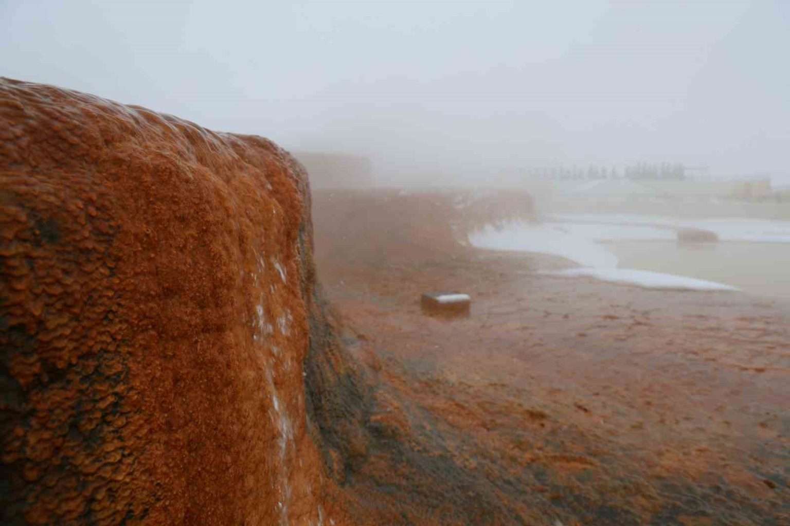 Sivas’ta bulunan ve Pamukkale Travertenleri’ne benzeyen yapısıyla dikkat çeken Altınkale, kar yağışının ardından ilginç görüntüler oluşturdu. Kent merkezine 31 kilometre mesafede bulunan ve 48 derece termal suyu ile dikkat çeken kaplıca, görsel bir şölen sundu. Beyaza bürünen travertenlerden sıcak su buharı yükselirken, sarı ve beyazın buluştuğu alan kartpostallık görüntüler oluşturdu. Limonit ve hematit içerikleri sayesinde ilgi odağı haline gelen ve yaz-kış ziyaretçi yoğunluğu yaşayan Altınkale, soğuk havada eşsiz anlara sahne oldu.