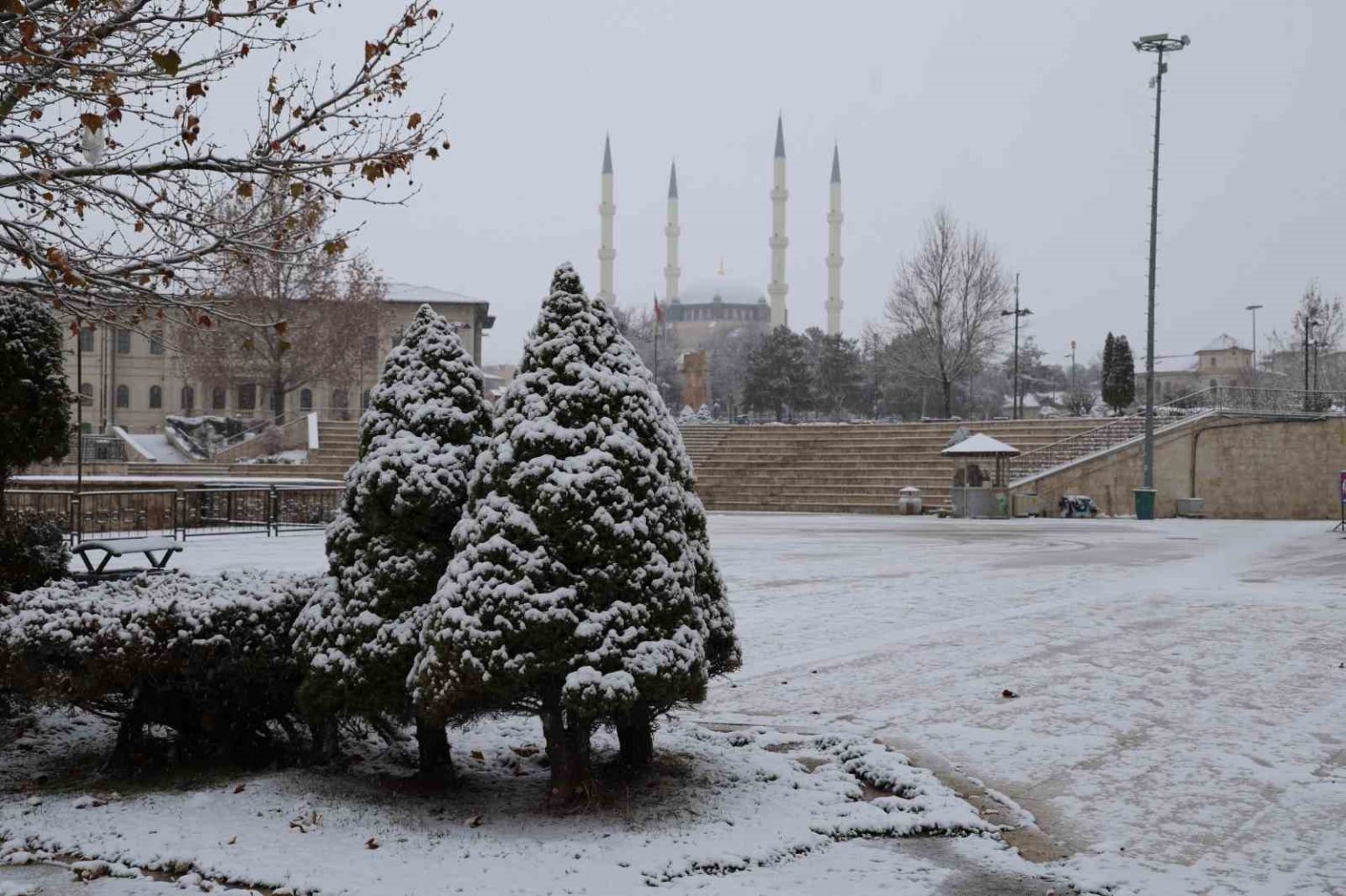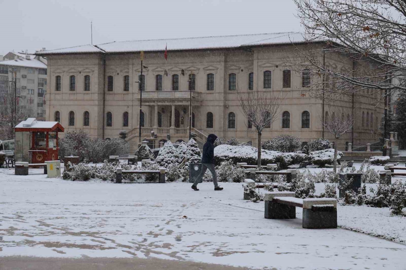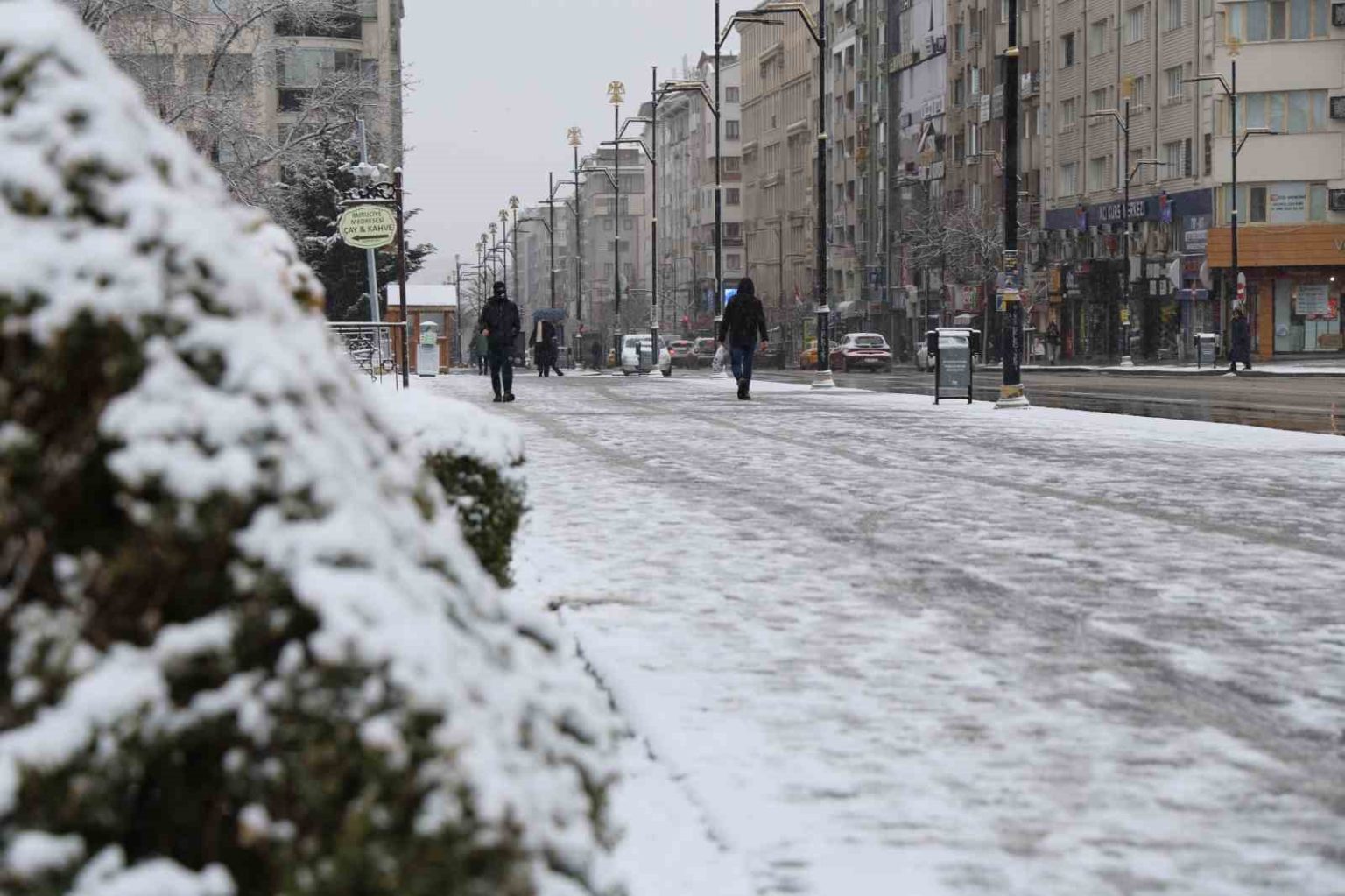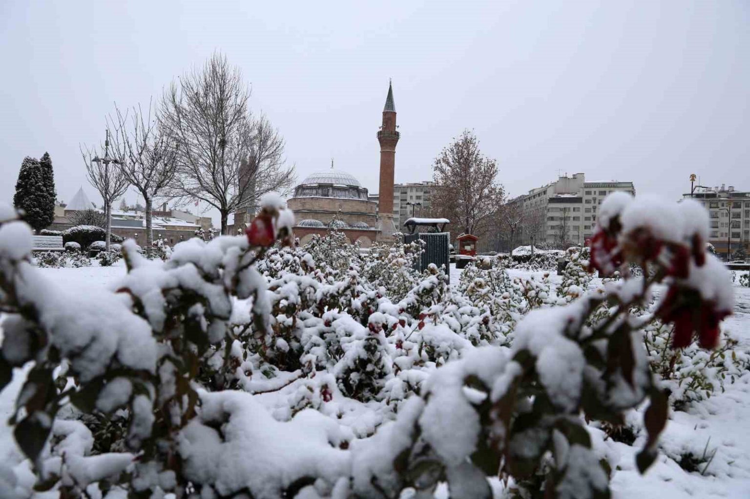 Meteoroloji Genel Müdürlüğü’nün uyardığı Sivas’a beklenen kar yağdı. Beyaza bürünen kentin meydanında kartpostallık görüntüler oluştu.