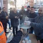 Personellere süt ikram eden Abdullah Arslan ise, “Zor şartlar altında çalışan belediyedeki arkadaşlarımıza sıcak süt ikramında bulunalım istedik. Bunu planladık, düzenledik, çok güzel oldu” dedi.