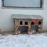 Dondurucu soğukların yaşandığı Elazığ’da sokak hayvanları da zor günler geçiriyor. Sivrice İlçe Emniyet Müdürlüğü’nde görev yapan personel, soğuk havalardan olumsuz etkilenen kediler için kendi imkanlarıyla kedi evi yaparak örnek bir hareket sergiledi. Kedi evinin içerisine yem ve su bırakan polis memurları, belirli aralıklarla yem takviyesi yaparak hem temel ihtiyaçlarını karşılıyor hem zarar görmemeleri için güvende tutmaya çalışıyor.