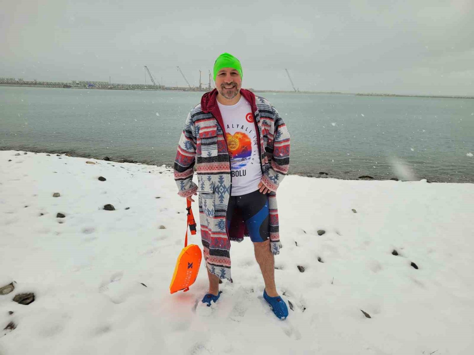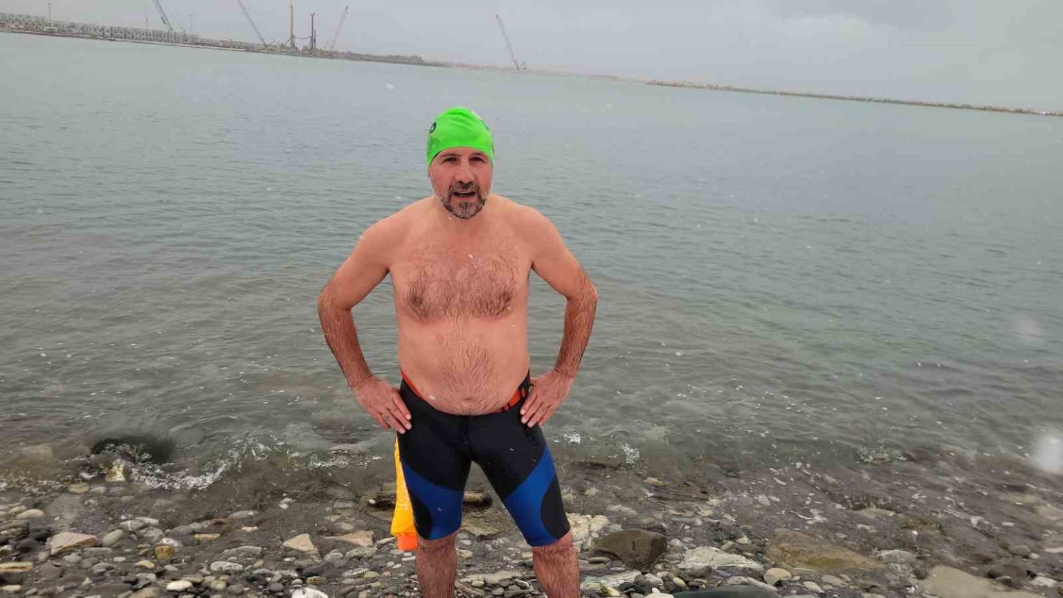 Kastamonu’nun İnebolu ilçesinde soğuk ve karlı havaya aldırış etmeyen vatandaş denize girerek yüzdü.