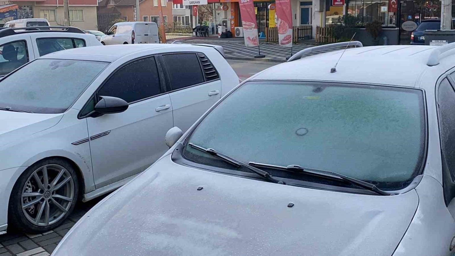 Soğuk hava sebebiyle çimler ve otomobil camları buz tuttu