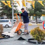 Su tasarrufu sebebiyle çim alanlarının büyük oranda azaltılacağı çalışmada, deforme olan bitkiler yerlerinden sökülerek saksıya alındı. Saksılarda bakımı yapılacak olan bitkiler, farklı alanlarda değerlendirilecek. Altyapı işlemlerinin sona ermesinin ardından hızla üstyapı çalışmalarına başlayacak olan ekipler, 8 bin metrekareye sahip Dünya Kavşağı’nda kuru peyzaj öğeleri, çim ayracı, dolamit taşı ve cüruf kullanarak alanı yeniden düzenleyecek.