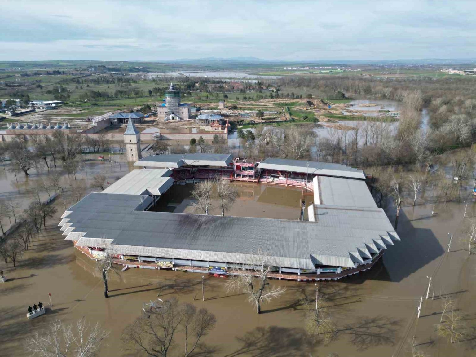 Tarihi Kırkpınar Yağlı Güreşleri’nin yapıldığı Edirne Sarayiçi güreş alanı, son günlerde etkili olan yağışların ardından tamamen sular altında kaldı. Debisi yükselen Tunca Nehri, yatağından çıkarak nehir kenarında bulunan Sarayiçi Er Meydanı’nı kapladı.