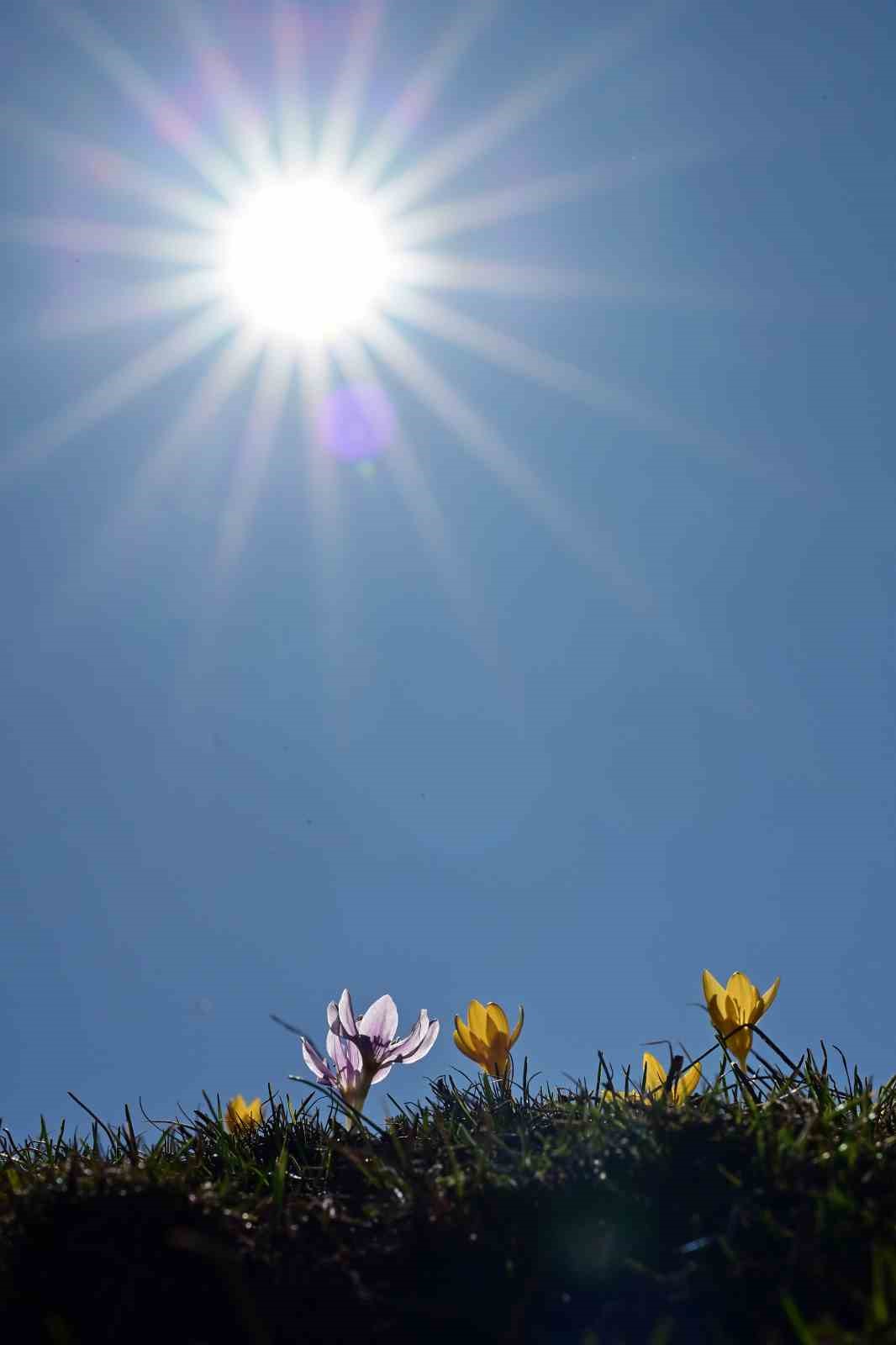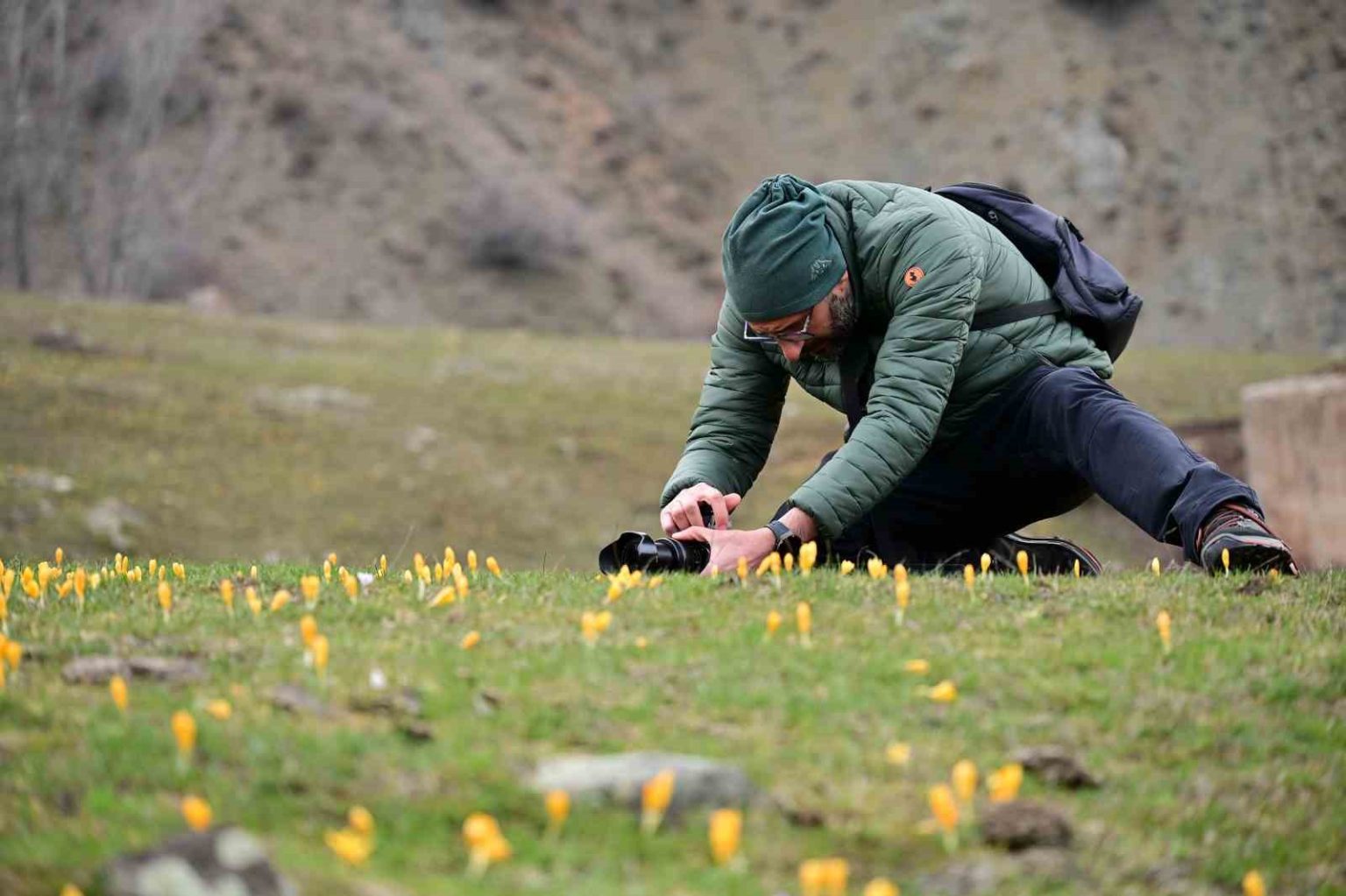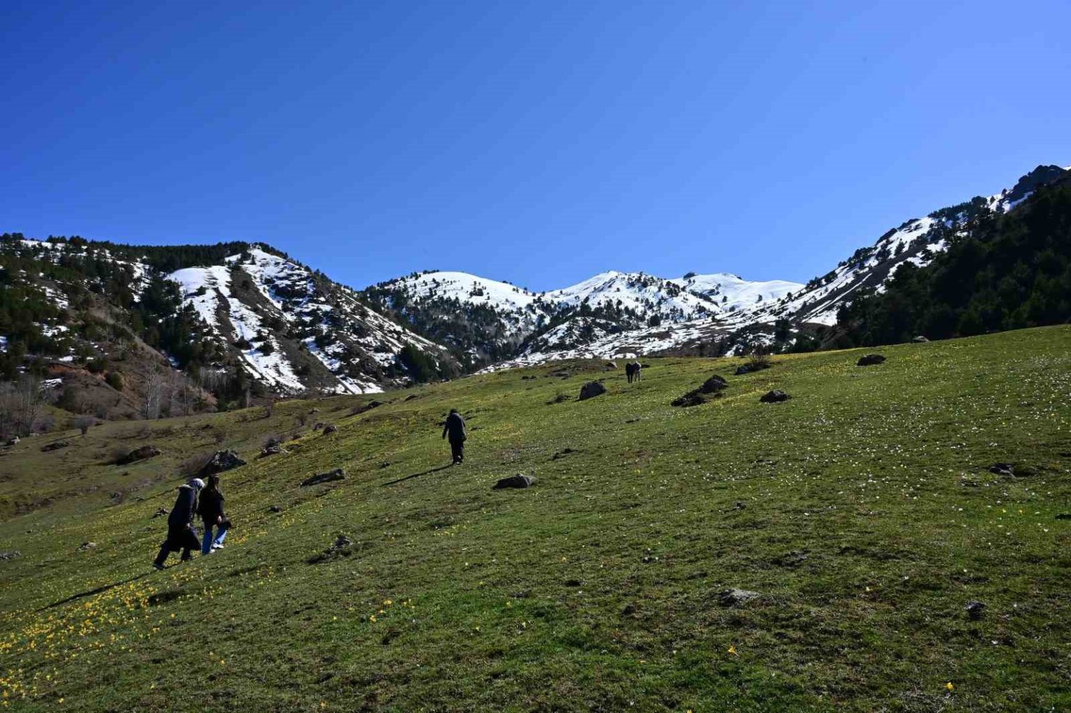 Karların ardından fışkıran bu renkli çiçekler, vadi boyunca metrelerce uzanan doğal bir halı görüntüsü oluşturarak görenleri kendine hayran bıraktı.