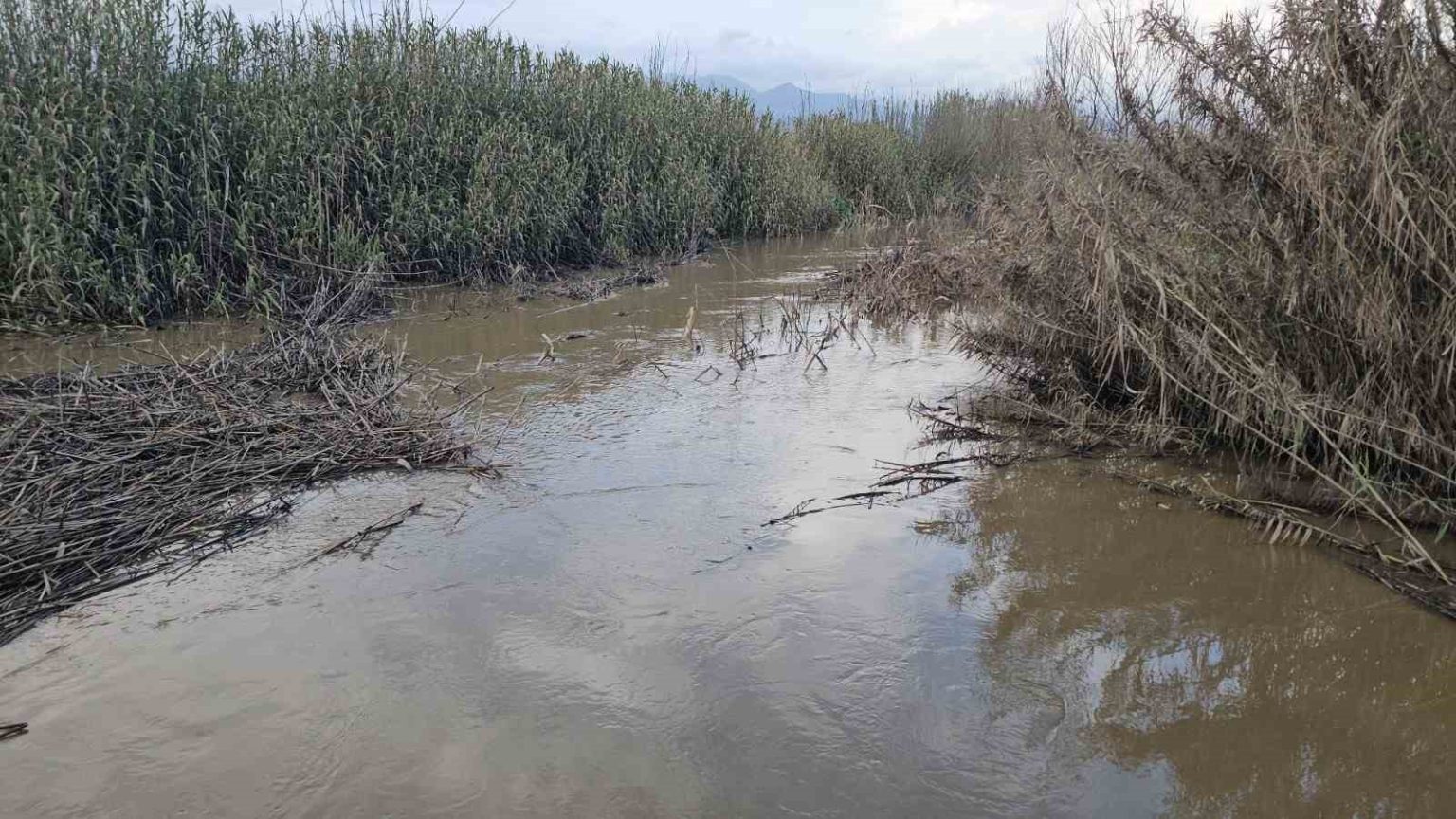 Aydın’ın Sultanhisar ilçesine bağlı Atça Mahallesi Çomaklı Ovası’nda bulunan Kokar Kurutma Kanalı taştı, tarım arazileri göle döndü.