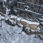 Türkiye’nin önemli inanç ve kültür turizmi merkezlerinden biri olan Sümela Manastırı ve çevresi, kar yağışıyla beyaza büründü. Altındere Vadisi’nin doğal dokusu ve tarihi manastırın atmosferi, kar manzarasıyla birleşince ortaya etkileyici görüntüler çıktı.