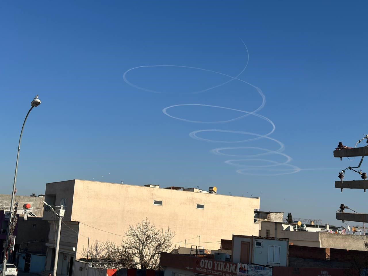 Şanlıurfa’nın Ceylanpınar ilçesinde Suriye sınır hattında ilerleyen uçağın çizdiği şekiller vatandaşlarda büyük bir merak uyandırdı.
