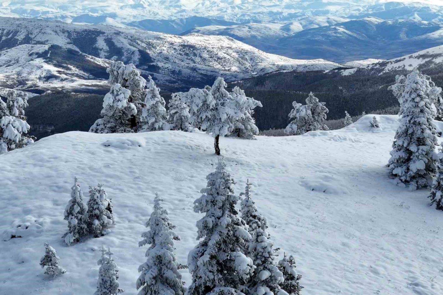 Kar yağışının ardından kristalize olan ağaç dalları ve bembeyaz örtüyle kaplanan dik yamaçlar, havadan çekilen görüntülerle bölgenin doğal güzelliğini bir kez daha kanıtladı.