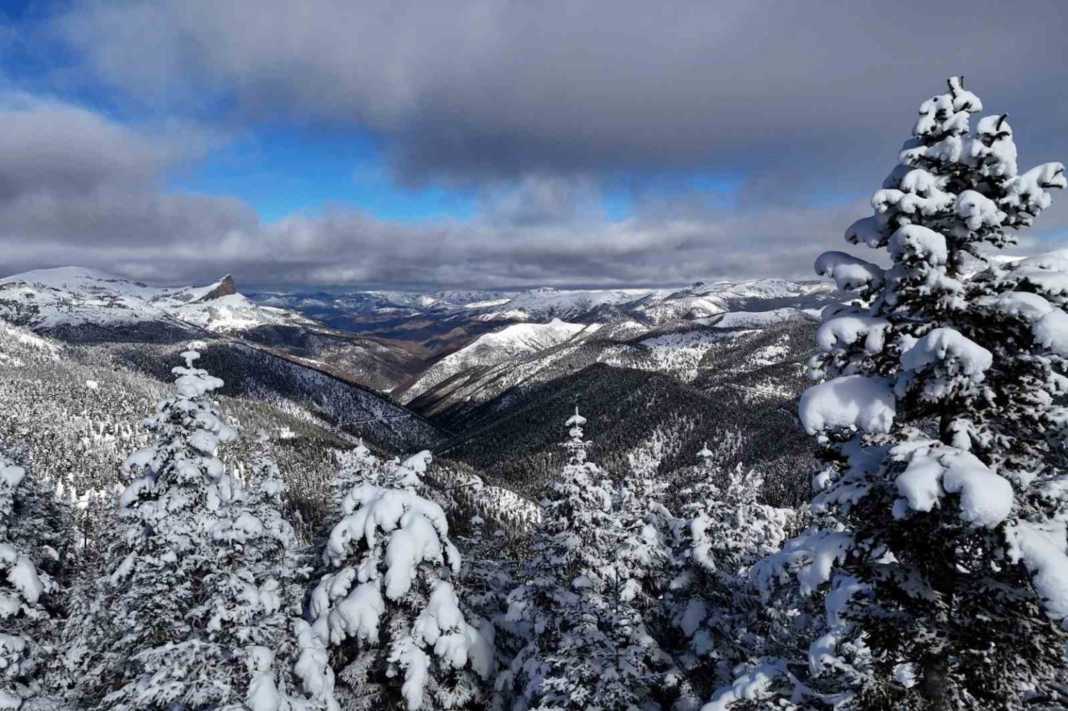 2 bin metre rakımda yer alan geçit, kar yağışının ardından ladin ve çam ormanlarıyla kaplı coğrafyasında seyrine doyumsuz manzaralar meydana getirdi.