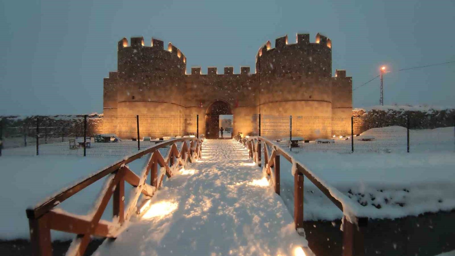 Van’ın İpekyolu ilçesinde bulunan ve Osmanlı mimarisinin en zarif örneklerinden biri olan tarihi Hüsrev Paşa Camii, uygulanan yeni ışıklandırma projesiyle geceye damga vuruyor. Hemen yanı başında yükselen görkemli Van Kalesi ile bütünleşen cami, ziyaretçilerine unutulmaz bir görsel şölen sunuyor.