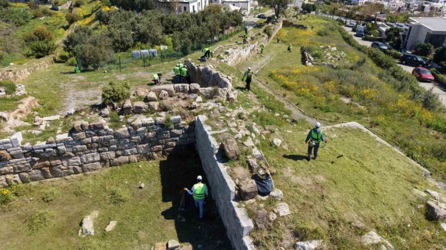 Bodrum Belediyesi Park ve Bahçeler Müdürlüğü ekipleri, Turizm Haftası etkinlikleri öncesinde Antik Halikarnassos Surları’nda kapsamlı bir bahar temizliği gerçekleştiriyor.