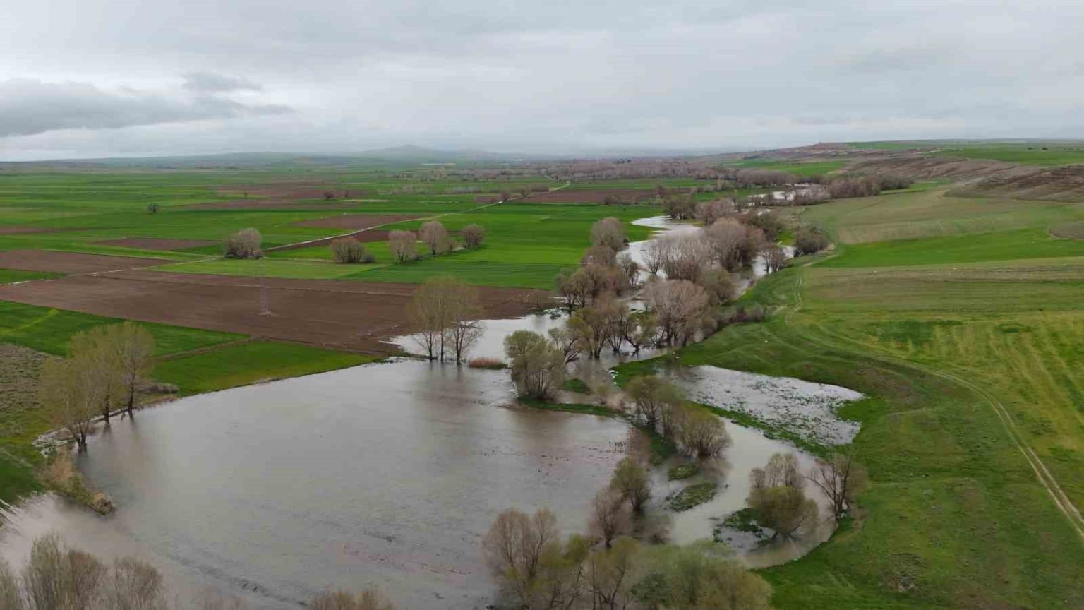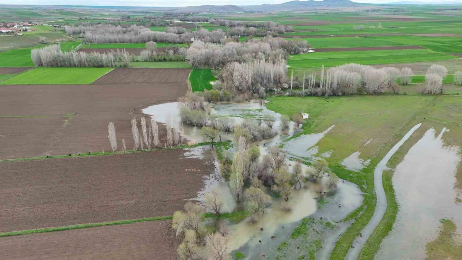 Yozgat’ta mevsim normallerinin üzerinde seyreden yağışlar bazı dere ve çaylarda taşkınlara neden oldu. Sarıkaya ilçesinden geçen Kanak Çayı’nın taşması sonucu çevredeki bazı tarım arazileri su altında kaldı. Taşkınlar dron ile görüntülendi.
