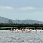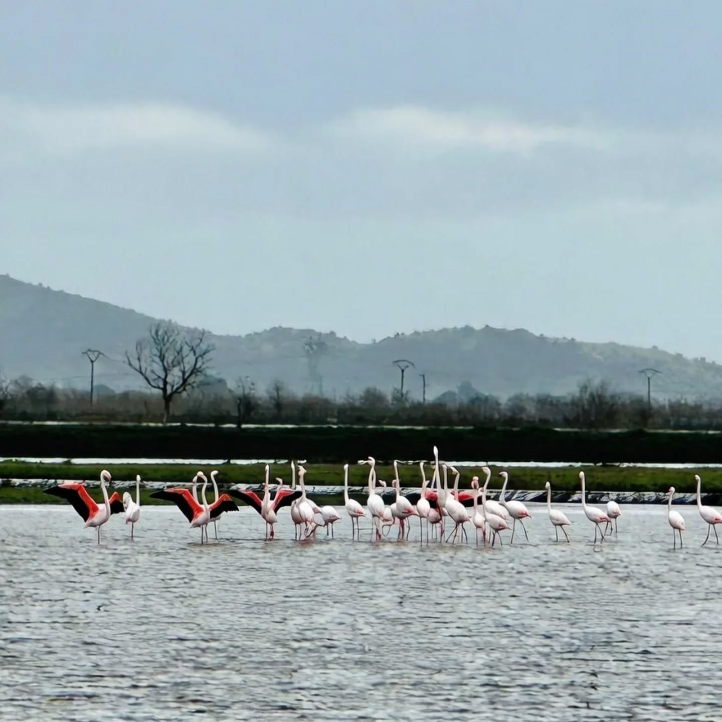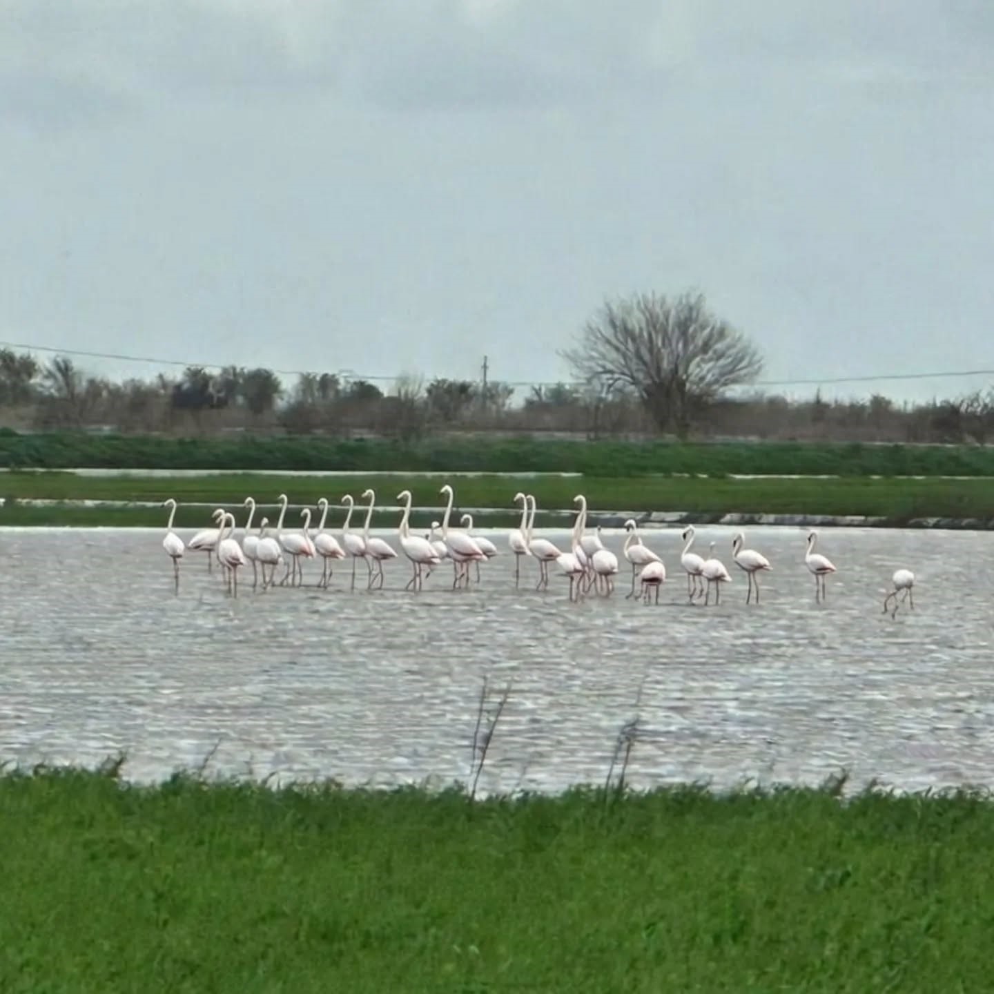 Aydın’da son günlerde etkili olan sağanak yağışların ardından Koçarlı Yeniköy Mahallesi’ndeki tarlalar Büyük Menderes Nehri’ndeki taşkınlardan dolayı sular altında kaldı. Tarlalarda yaşanan su baskınları arazi sahiplerini üzerken, su dolu tarlalarda yiyecek arayan flamingolar ise cep telefonu ile görüntülendi. Bölgede incelemelerde bulunan Koçarlı İlçe Tarım Müdürlüğü yetkilileri flamingoların su dolu tarlalarda yiyecek aramasını cep telefonu ile fotoğrafladı. Flamingoların bir süre sonra bölgeden uzaklaştığı öğrenildi.