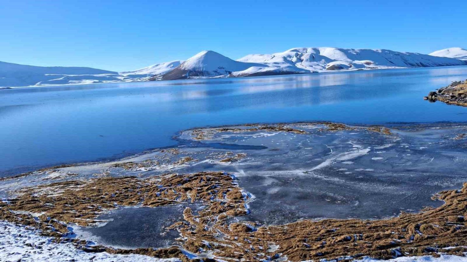 Ağrı’nın Taşlıçay ilçesine bağlı Balık Gölü, hava sıcaklıklarının mevsim normallerinin altına düşmesiyle birlikte kısmen buz tuttu.