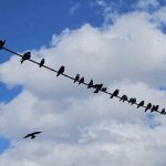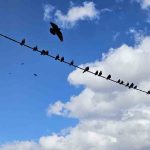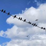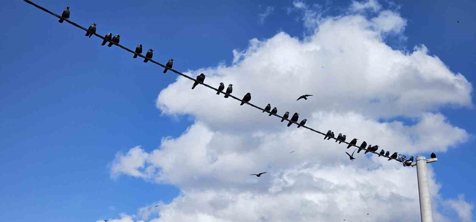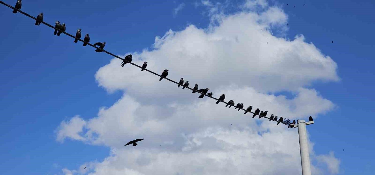 BİTLİS (İHA) – Bitlis’in Tatvan ilçesinde elektrik tellerine sıralanan onlarca kuş, mavi gökyüzü ve beyaz bulutlarla birlikte güzel görüntüler oluşturdu.