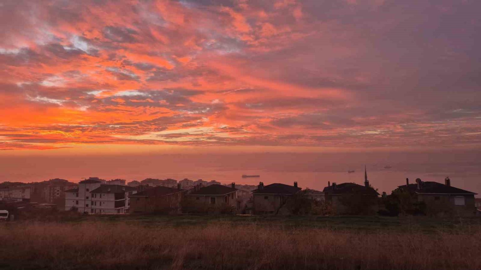 Tekirdağ Süleymanpaşa’da gün doğumuyla birlikte gökyüzünde oluşan turuncu tonlar vatandaşlara büyüleyici bir sabah yaşattı.