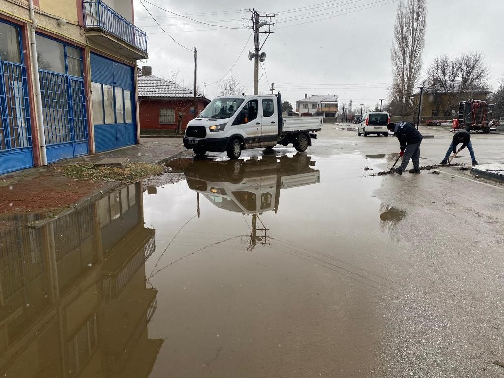 İnönü Belediyesi, ilçede su baskınlarına ve buzlanmaya neden olan tıkalı yağmur suyu giderlerini temizleyerek hem yaya hem de araç trafiğini güvenli hale getiriyor.