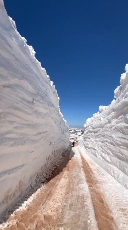Oğuz’un cep telefonu kamerasıyla kaydettiği görüntülerde, karla kaplı yolun iş makineleriyle açıldığı ve adeta tüneli andıran geçitlerin oluştuğu dikkat çekti. Yer yer metrelerce yüksekliğe ulaşan kar kütleleri, bölgedeki kış şartlarının sertliğini gözler önüne serdi. Görüntülerde, yolun iki yanında duvar gibi yükselen kar birikintileri arasında kalan yol dikkat çekti. Bölge sakinleri ise bu yıl kar yağışının önceki yıllara göre daha yoğun olduğunu ifade etti.