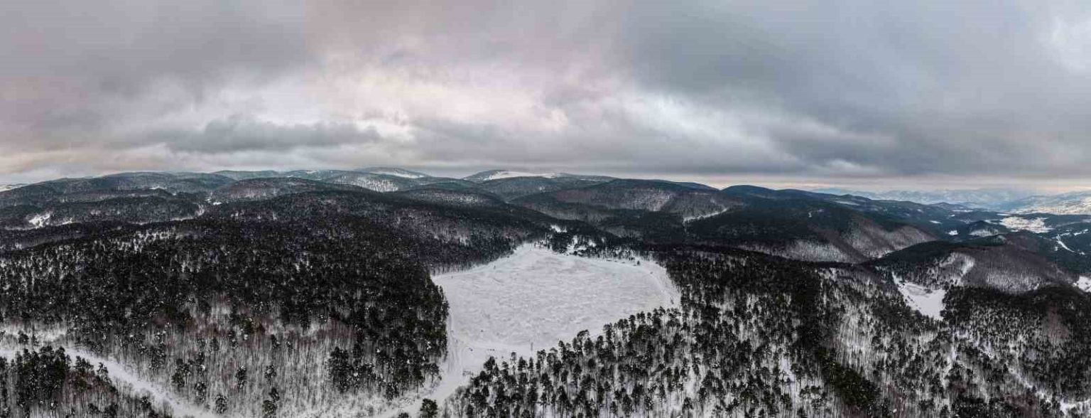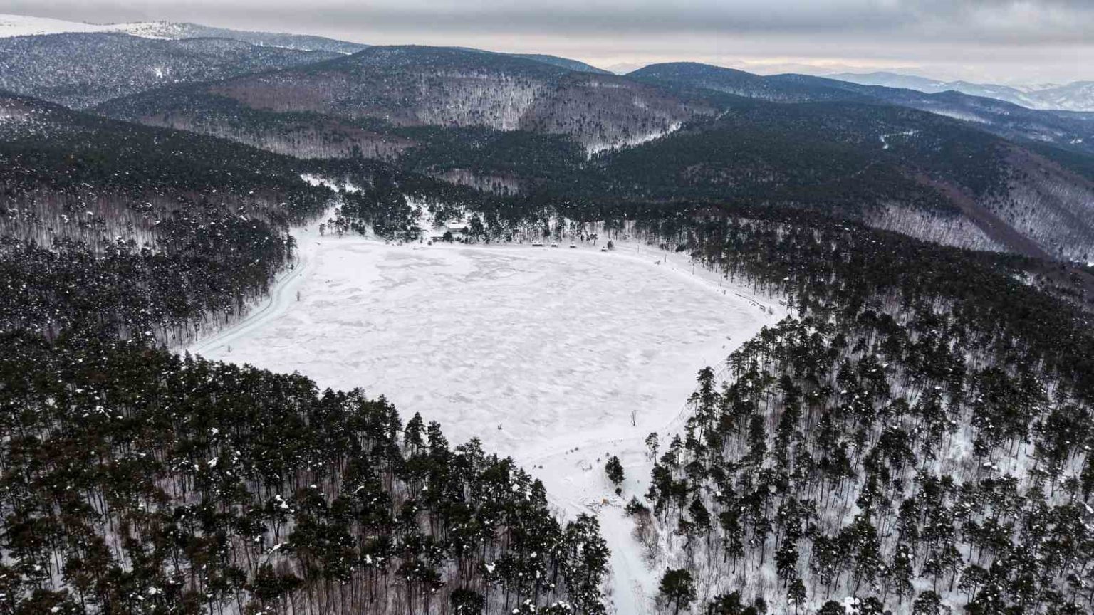 Tokat’ın Reşadiye ilçesindeki Kurt Gölü, donan yüzeyi ve karlı manzarasıyla görsel şölen sundu.