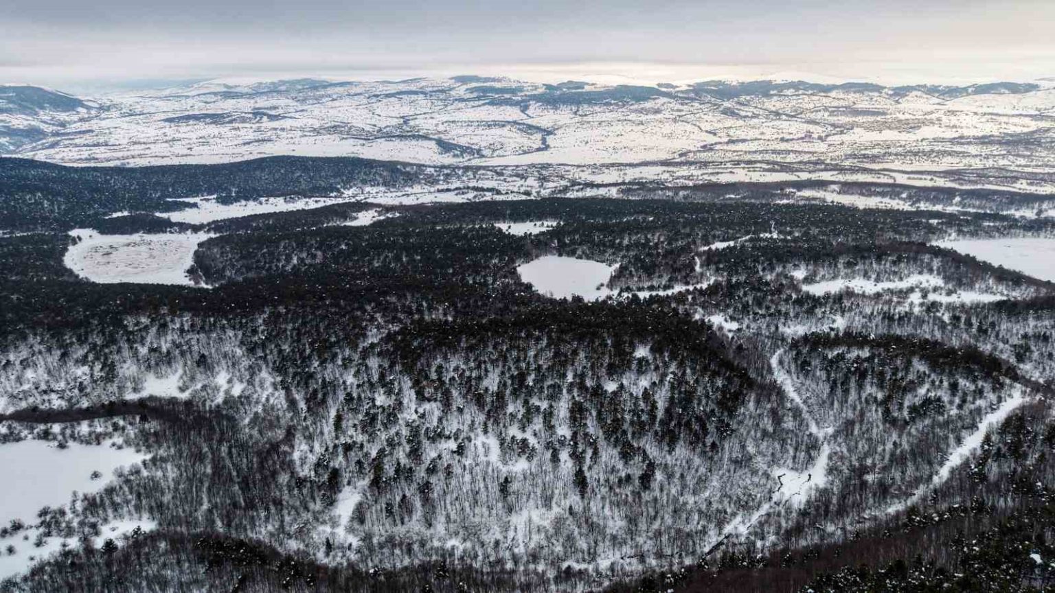 İlçeye bağlı Kızılcaören beldesi yakınlarında bulunan yaz aylarında mesire alanı olarak kullanılan Kurt Gölü, kışın ise farklı bir güzelliğe büründü. Soğuk hava nedeniyle buz tutan göl yüzeyi beyaz örtüyle kaplanırken, yeşil çam ormanlarıyla oluşturduğu manzara dron ile havadan görüntülendi. Doğayla iç içe görüntüler izleyenleri adeta mest etti.