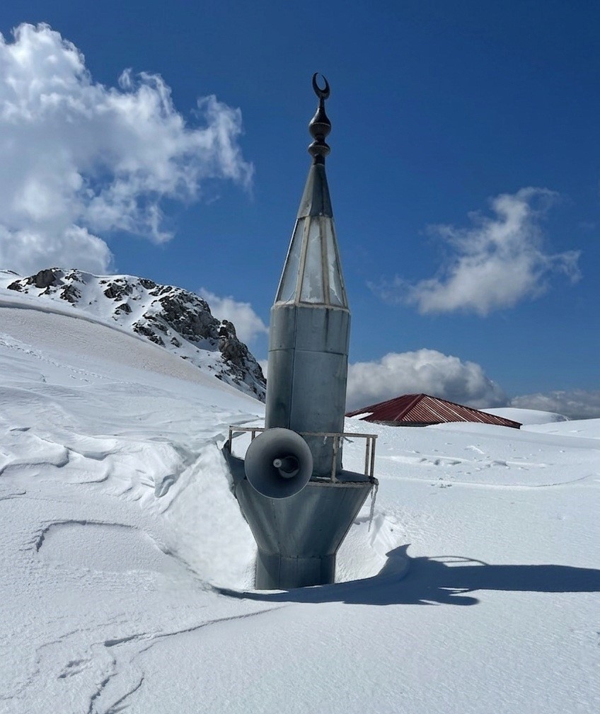 Mersin’in Anamur ilçesi ile Antalya’nın Gazipaşa ve Karaman’ın Ermenek ilçelerinin kesişim noktasında bulunan Kaşpazarı Yaylası’nda etkili olan yoğun kar yağışı, 741 yıllık tarihi camiyi adeta görünmez hale getirdi.