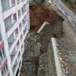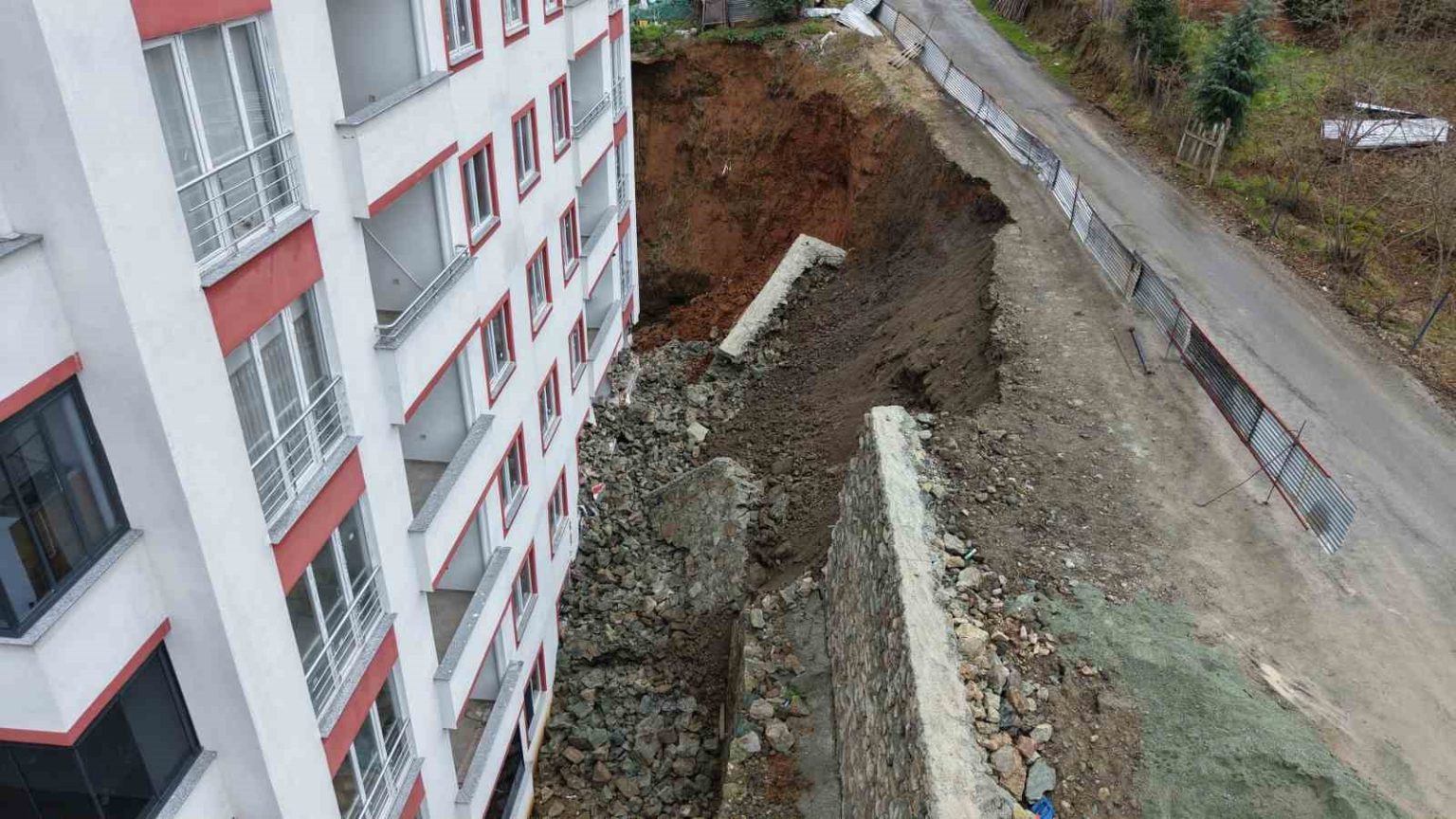 Trabzon’da istinat duvarı çöktü, 9 katlı bina zarar gördü