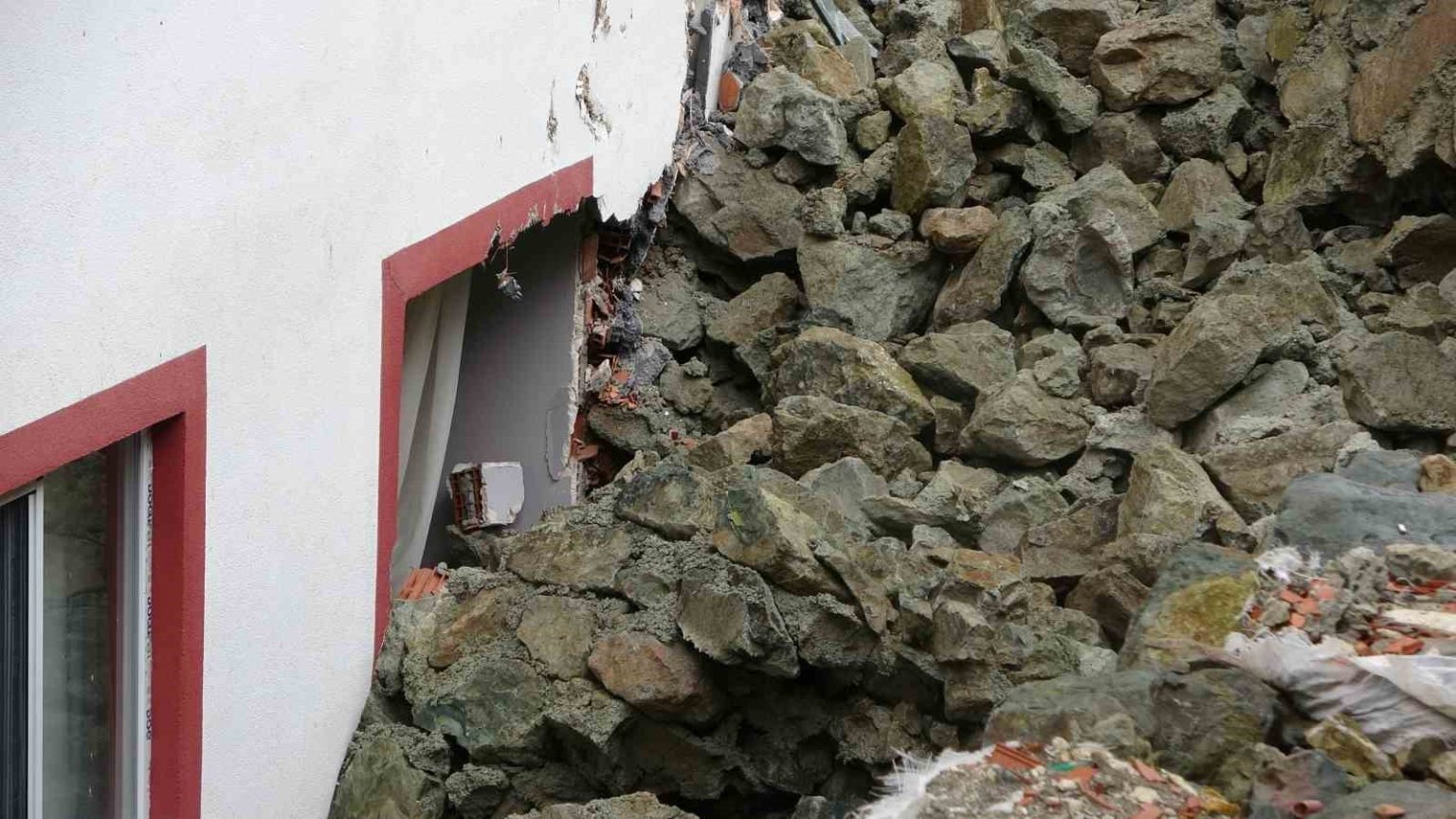 Olay, Yomra ilçesine bağlı Sancak Mahallesi Gümüş Sokak’ta meydana geldi. Edinilen bilgilere göre, yol kenarında bulunan istinat duvarı henüz belirlenemeyen bir nedenle sabah saatlerinde büyük bir gürültüyle çöktü. Çöken duvardan kopan taş ve toprak yığını, bitişiğinde bulunan 9 katlı yeni binanın iki dairesinin duvarını yıktı.