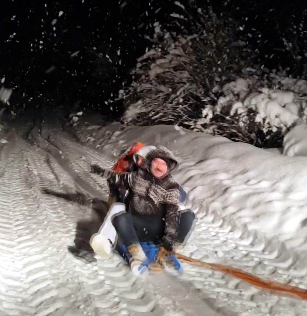 Traktöre bağlanan kızaklarla gün boyu kayak yaptılar