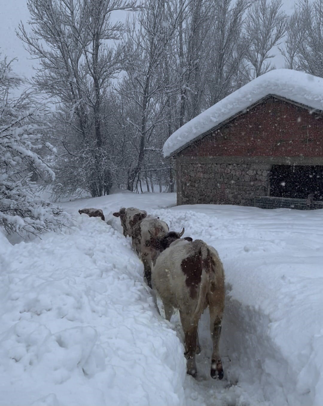 Tunceli’nin Ovacık ilçesinde kar kalınlığı 1,5 metreyi aştı. İneklerin karlar arasında adeta kaybolduğu anlar vatandaşlar tarafından görüntülendi.