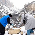 Tunceli’nin Çemişgezek ilçesinde geçler tarafından yoğun kar yağışı nedeniyle yiyecek bulmakta zorlanan yaban hayvanları için doğaya yem bırakıldı.