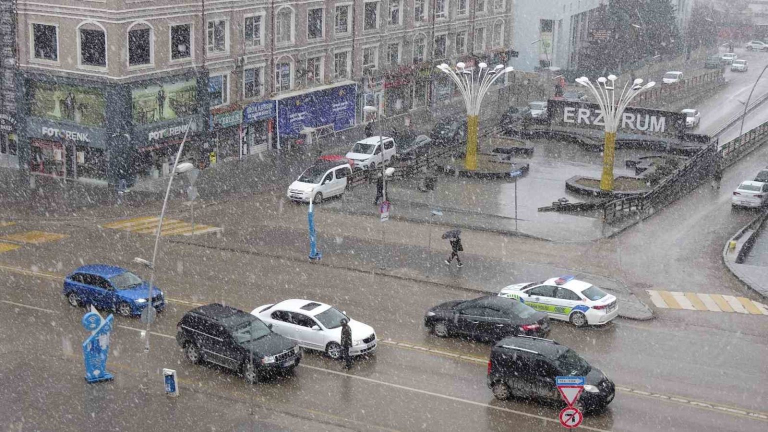 Erzurum’da sabah saatlerinde önce yüksek kesimlerde etkili olmaya başlayan kar yağışı kent merkezine de ulaştı.