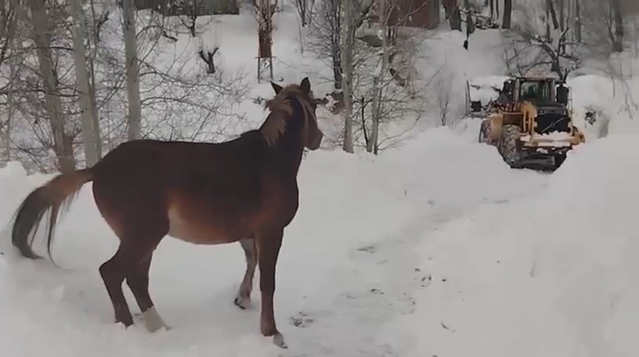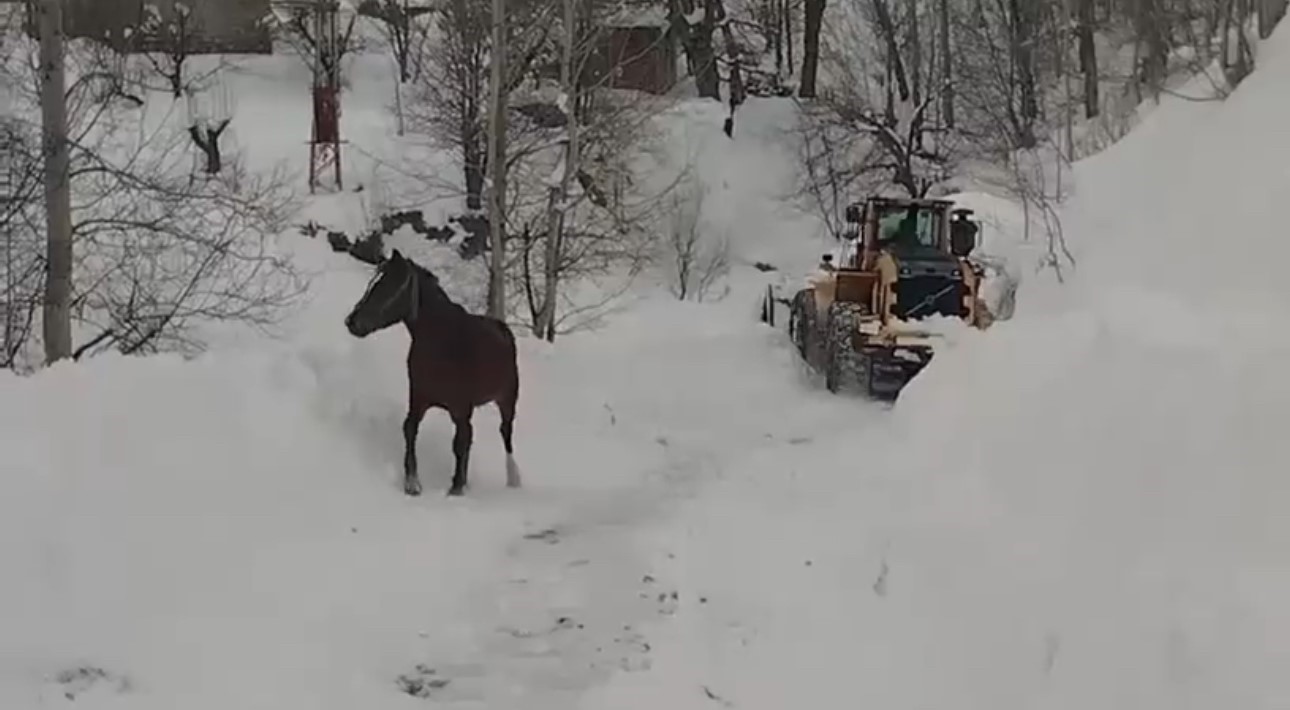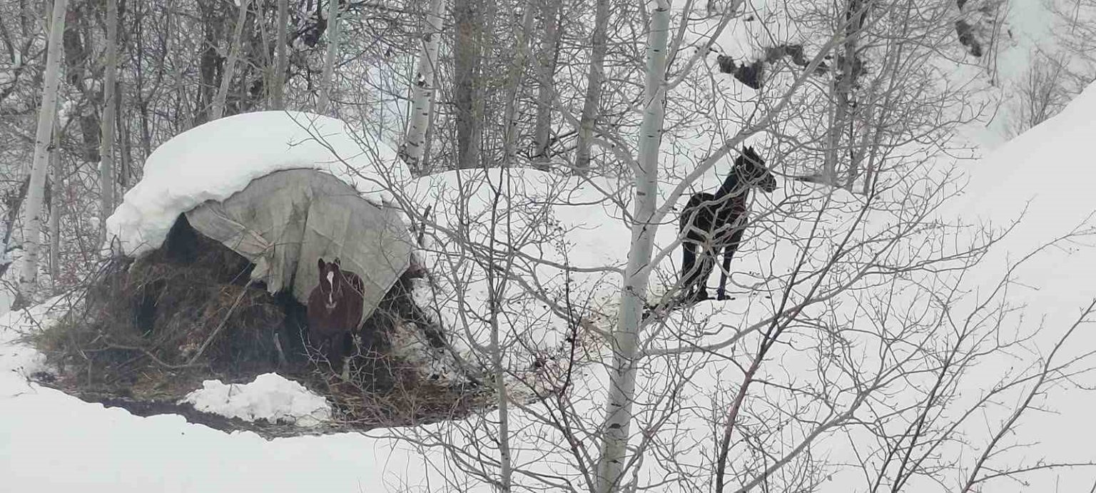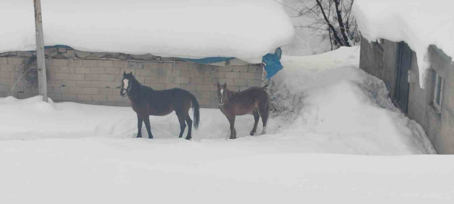 Hakkari’nin Yüksekova ilçesinde kışın kimsenin ikamet etmediği ve kar nedeniyle yolu kapanan köyde terk edilen 2 at kurtarılarak koruma altına alındı.