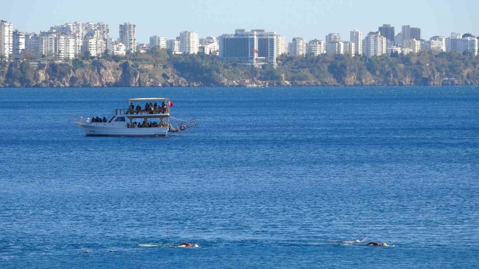 Türkiye’nin birçok bölgesinde sert kış şartları etkisini artırırken, Antalya’da farklı bir kış manzarası yaşandı. Kentteki turistler kar manzarası eşliğinde yüzerken, vatandaşlar da sahilde güneşli havanın tadını çıkardı.
