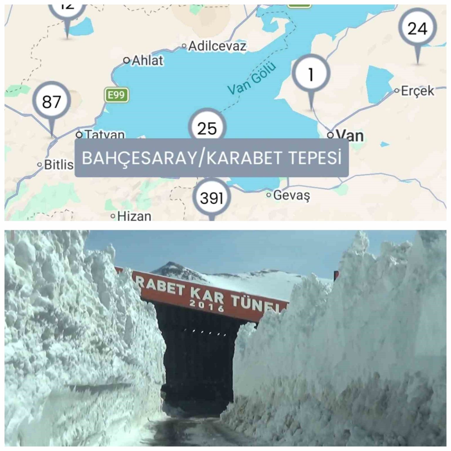 Kar yağışı ve düşen çığlar nedeniyle 27 Aralık’ta ulaşıma kapanan Karabet Geçidi’nde kar kalınlığı 3 metre 91 santime ulaşırken, Bahçesaraylılar yolun kapalı olmasından dolayı Van’a ulaşımlarını 250 kilometrelik mesafedeki Bitlis’in Hizan ilçesi üzerinden sağlıyor.
