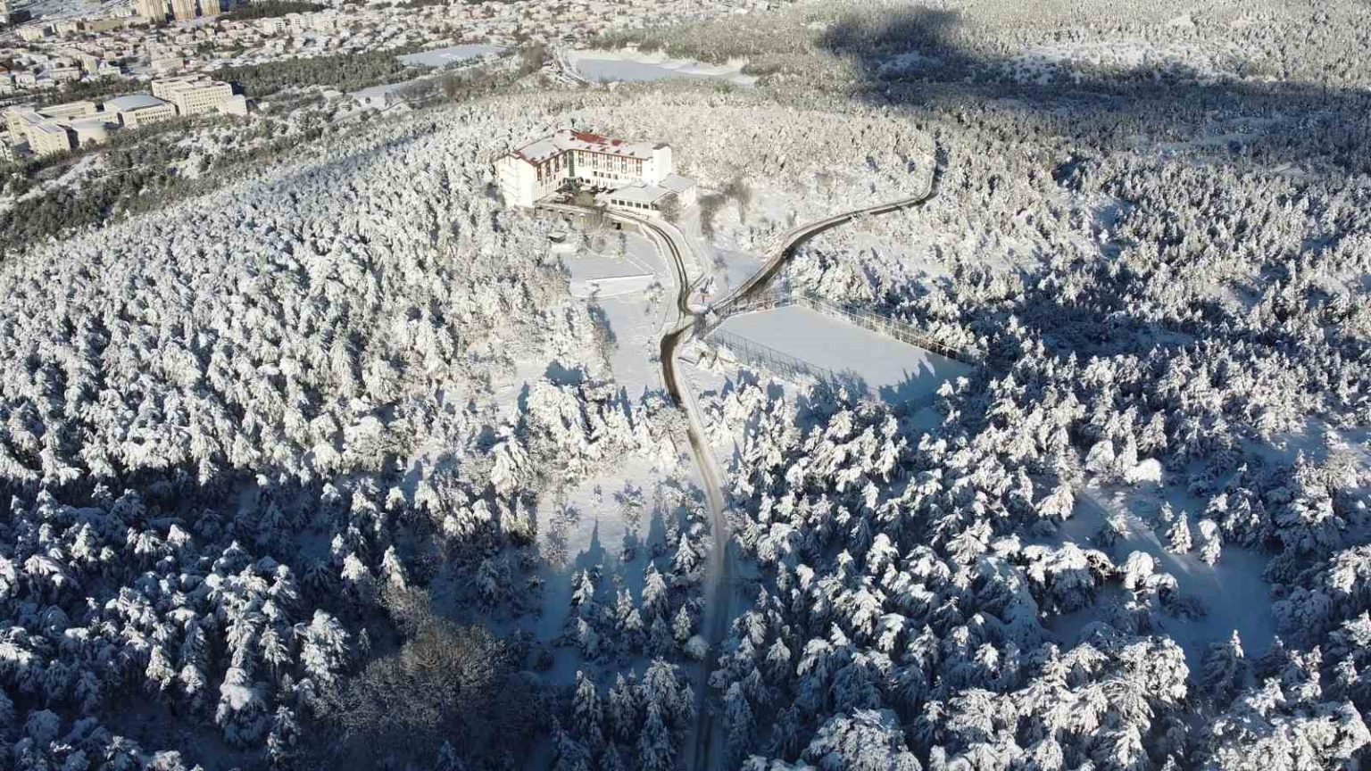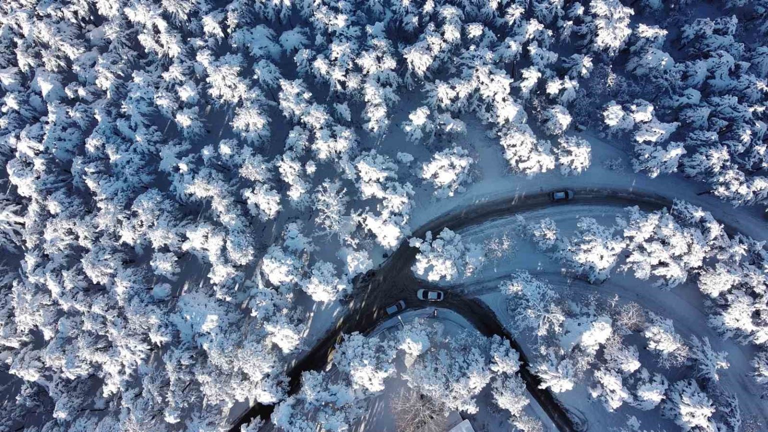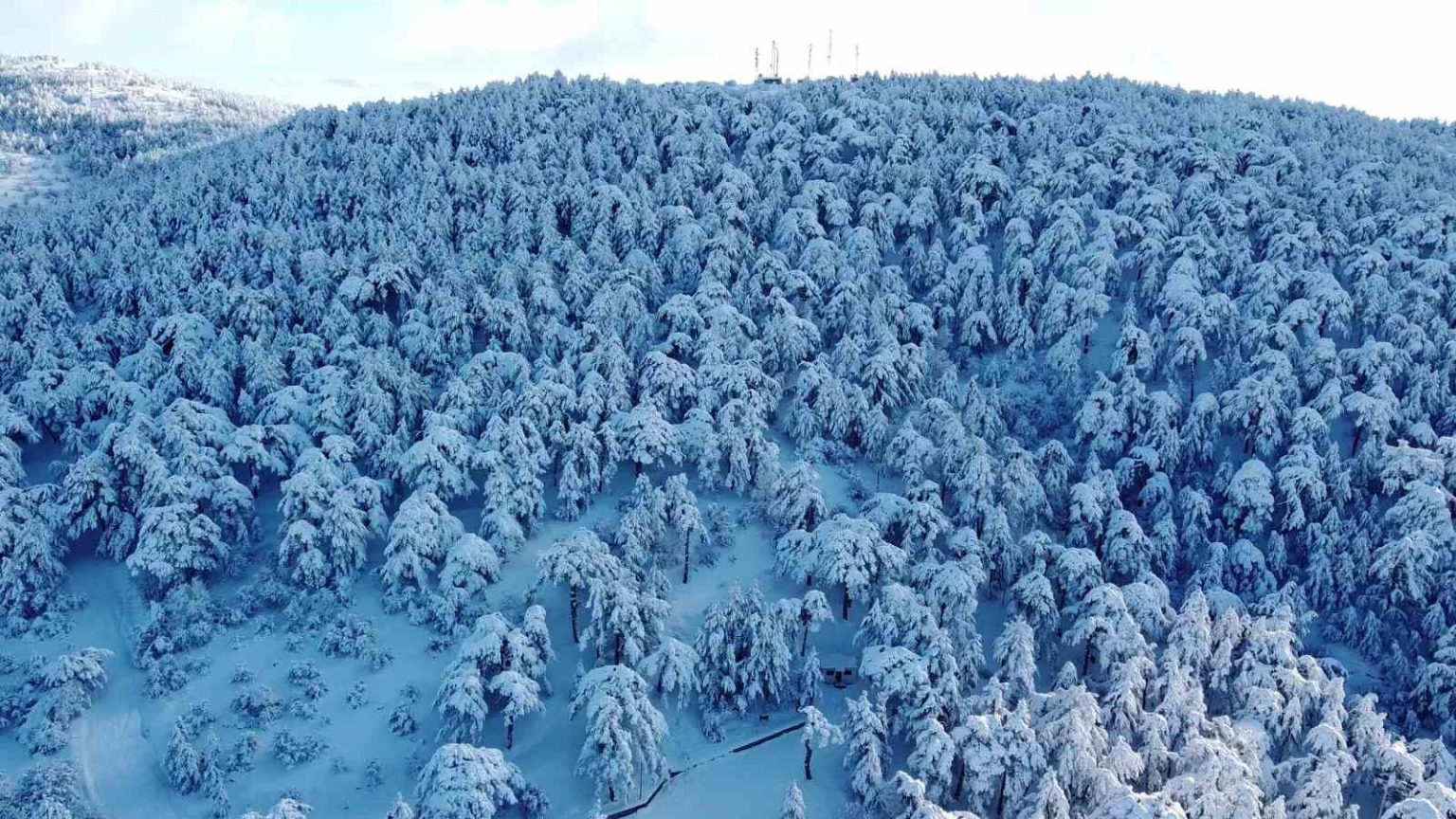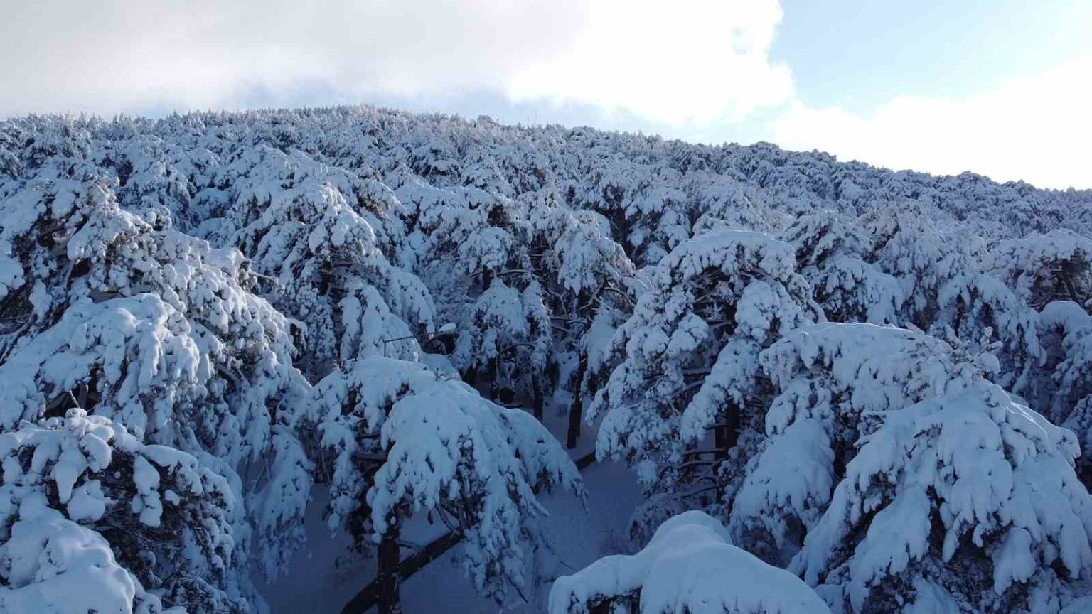 Türkiye’nin ilk Milli Parkı Çamlık’ta kar manzarası havadan görüntülendi