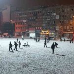 Kayra Kılınç ise, “Sınavdan çıktık, deneme çözüyorduk. Kar yağdığını görünce meydana gelip biraz oynayalım dedik. Eğleniyoruz, biraz soğuk ama gayet güzel” ifadelerini kullandı.