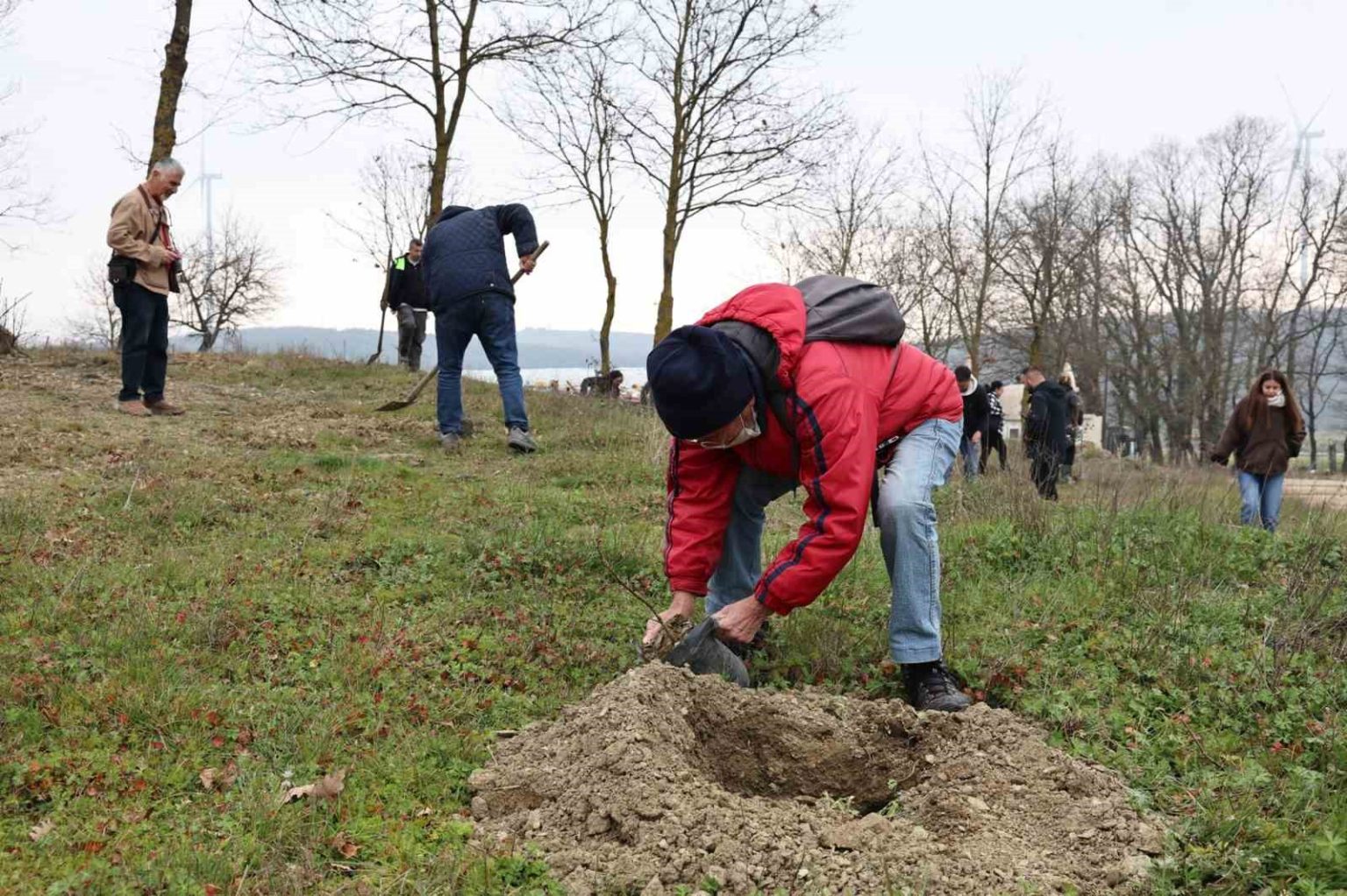 Konuşmaların ardından protokol üyeleri ve katılımcılar diktikleri fidanlara ilk can sularını verdi.