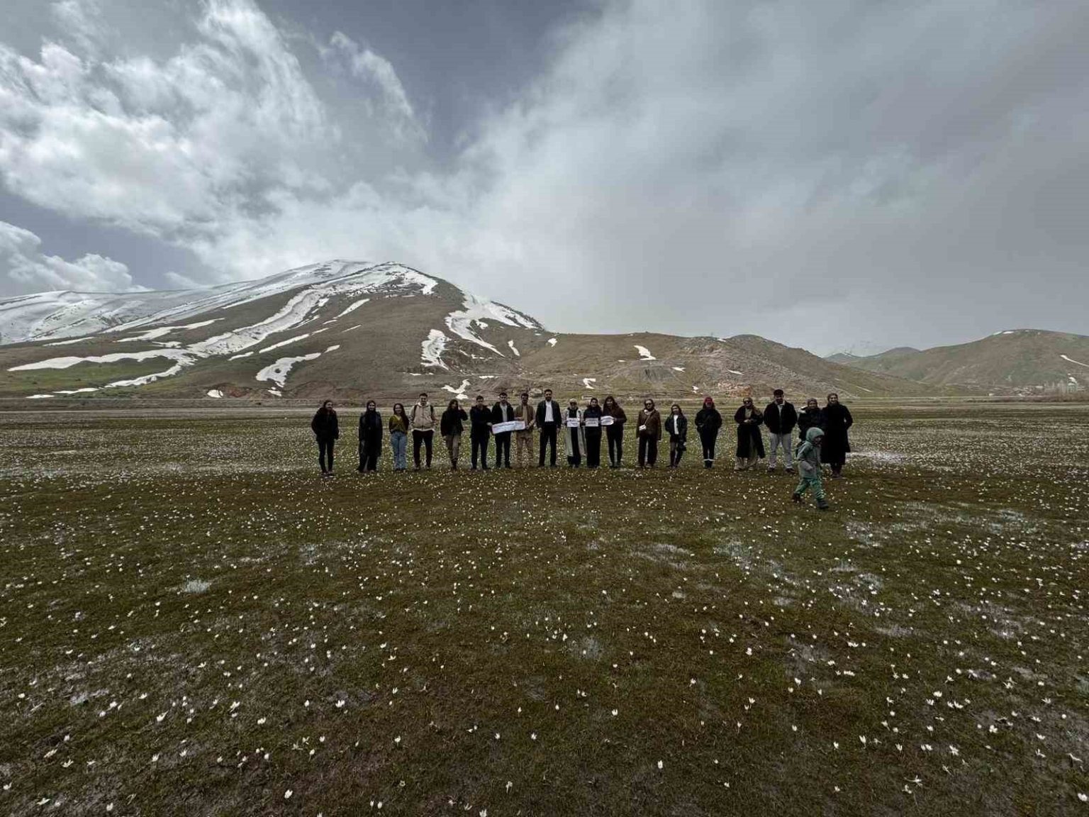 Üniversite öğrencilerinden çiğdemler arasında doğa yürüyüşü