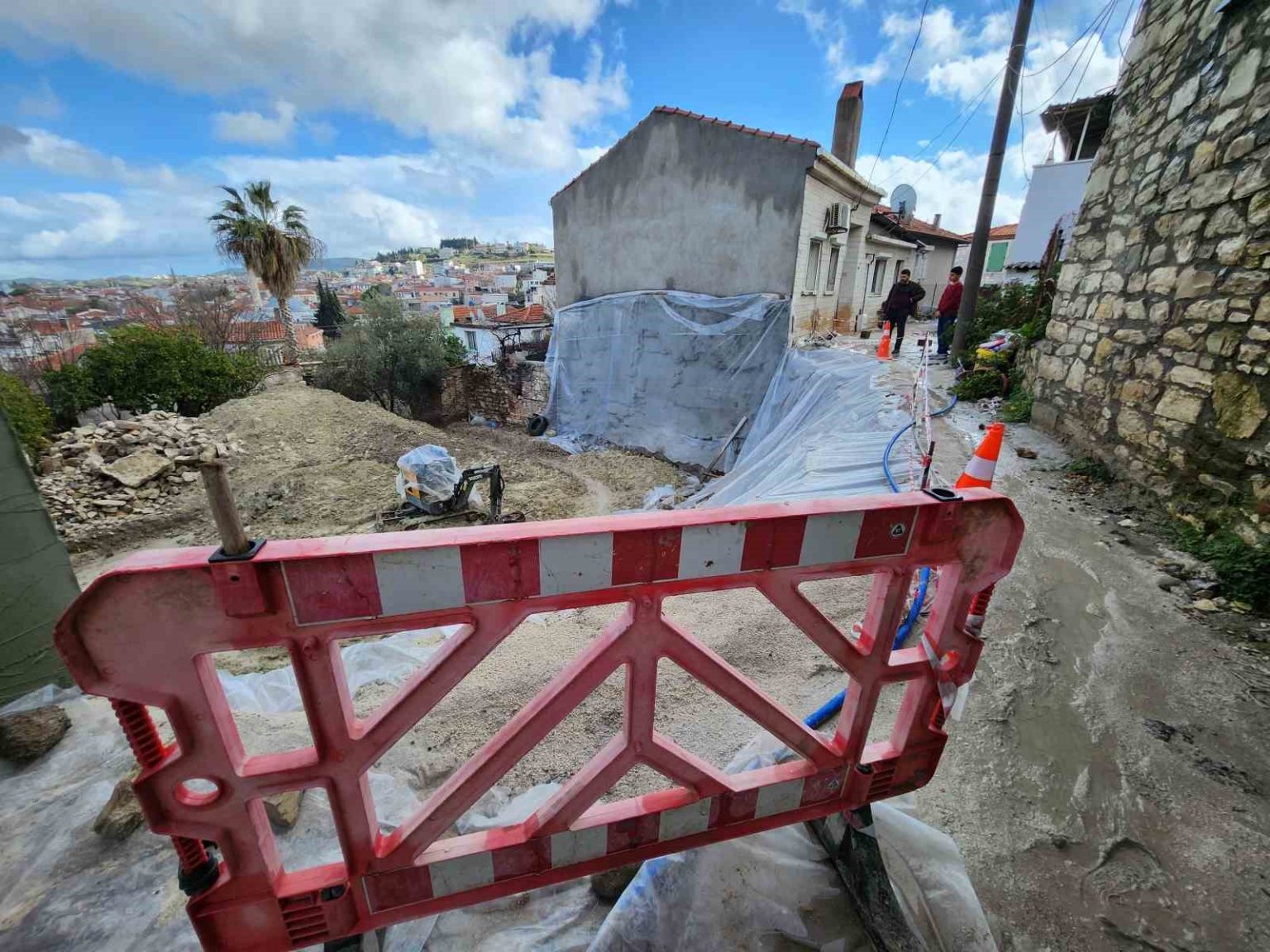 İddiaya göre, gerekli güvenlik önlemleri alınmadan başlatılan kazı çalışması sonrası yaşanan hasarın ardından inşaat firması, kazı alanının çevresine serpme beton döktü. Yağışların yapılara daha fazla zarar vermemesi için ise naylon brandalarla geçici önlem alındığı görüldü. Mahalle sakinleri, alınan tedbirlerin yetersiz olduğunu savundu.