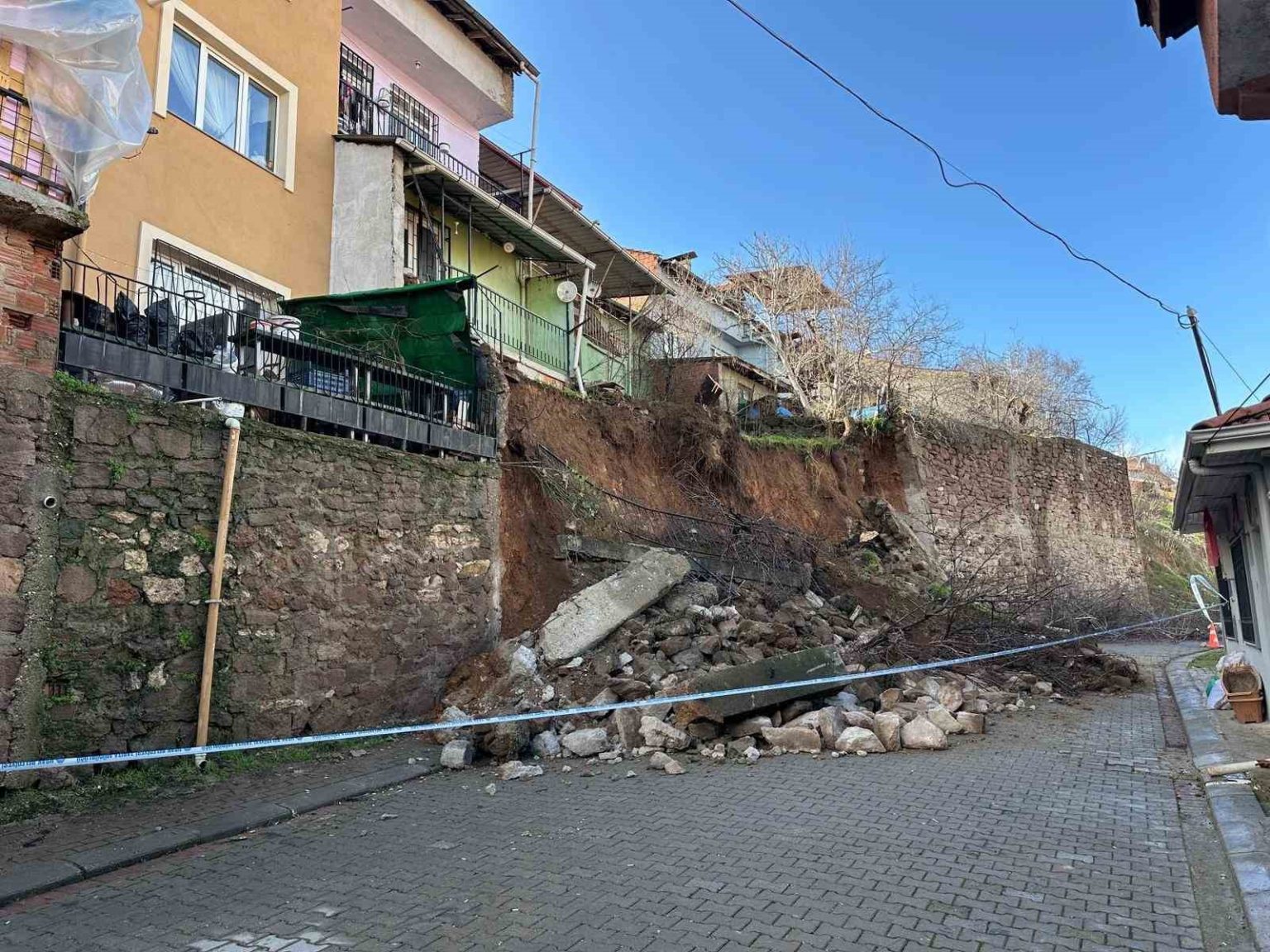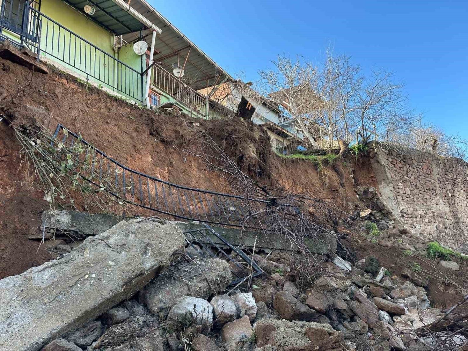 Uşak’ta yağış sonrası istinat duvarı çöktü, toprak kayması yaşandı: 3 ev tahliye edildi