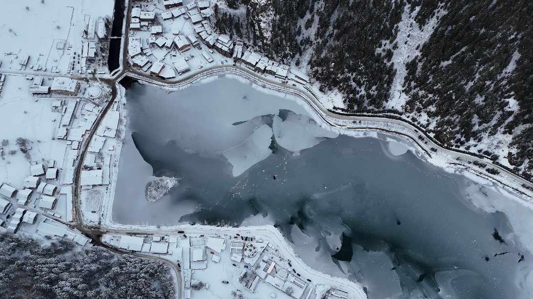 Trabzon’un dünyaca ünlü turizm merkezlerinden Uzungöl, günlerdir etkisini sürdüren yoğun kar yağışı sonrası dondurucu soğuklarla birlikte buz tuttu.