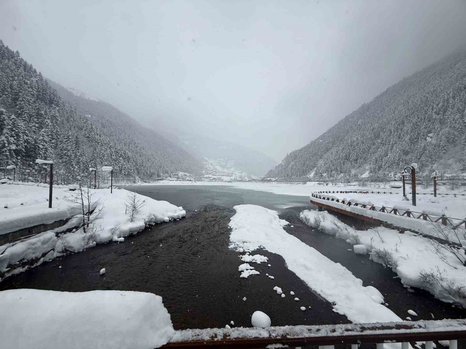 Türkiye’nin önemli turizm merkezlerinden biri olan Trabzon’un Çaykara ilçesine bağlı Uzungöl’de bir süredir etkili olan yoğun kar yağışı hayatı olumsuz yönde etkiliyor. Zaman zaman tipi şeklinde etkili olan yağış sonrası kar kalınlığı Uzungöl’ün bir çok noktasında 1 metreyi aştı. Uzungöl ise tamamen dondu.