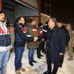 Bingöl’de yılbaşı gecesi etkisini artıran yoğun kar yağışı, buzlanma ve dondurucu soğuk havaya rağmen, vatandaşların yeni yıla huzur ve güven içerisinde girebilmesi için Emniyet Müdürlüğü ve Jandarma Komutanlığı ekipleri çalışmalarını sürdürüyor. Vali Dr. Ahmet Hamdi Usta beraberindeki İl Jandarma Komutanı Tuğgeneral Sabri Küyük ve İl Emniyet Müdürümüz Beyti Kalaycı ile birlikte Ekinyolu Jandarma Uygulama Noktasında görevli personel ile bir araya geldi. Çalışmalar ve son durum hakkında bilgi alan Vali Usta, aynı zamanda hem güvenlik güçlerinin hem de seyahat eden vatanların yeni yılını kutladı.