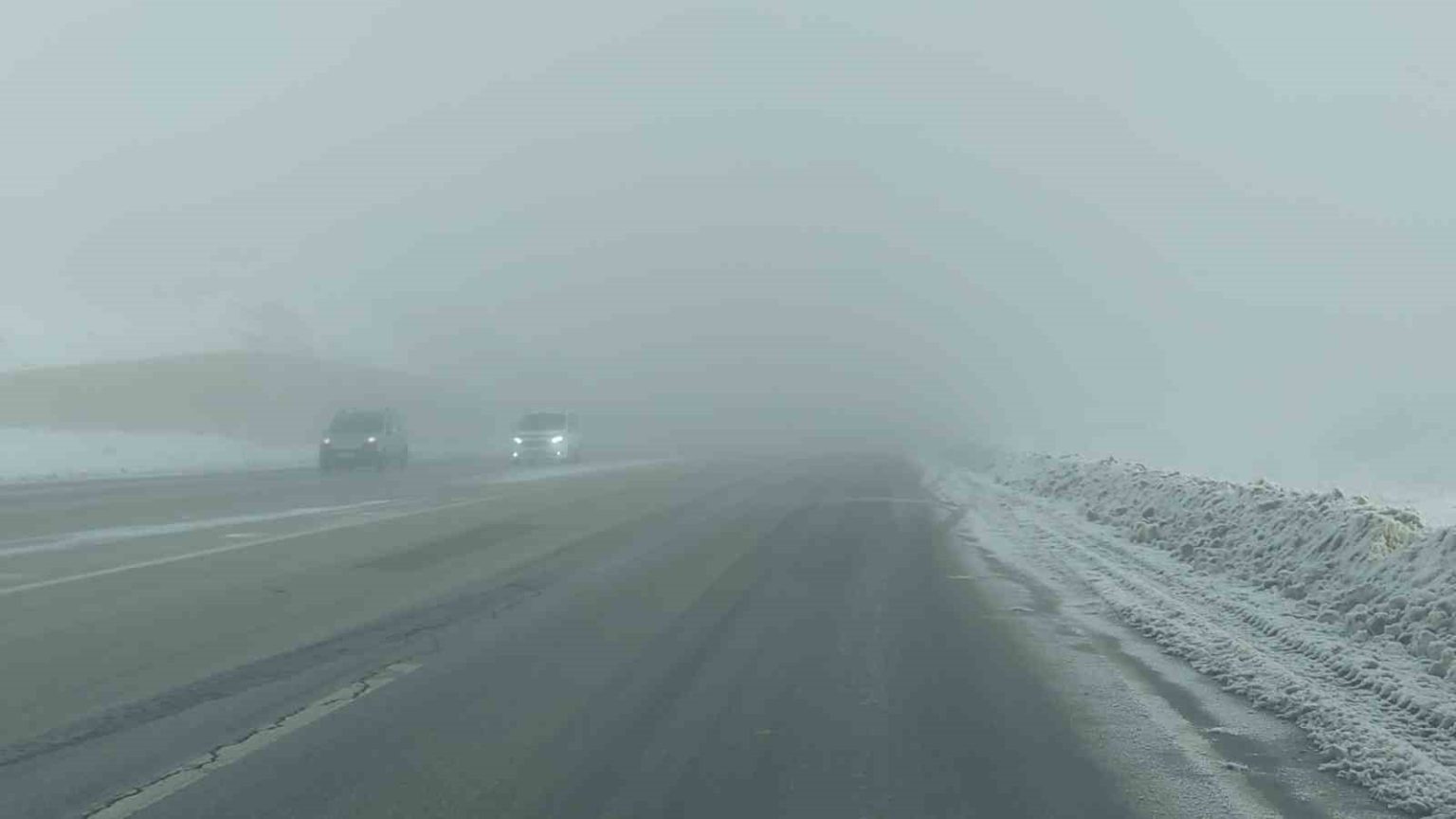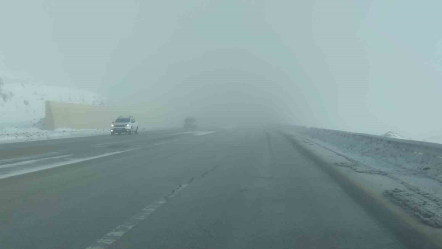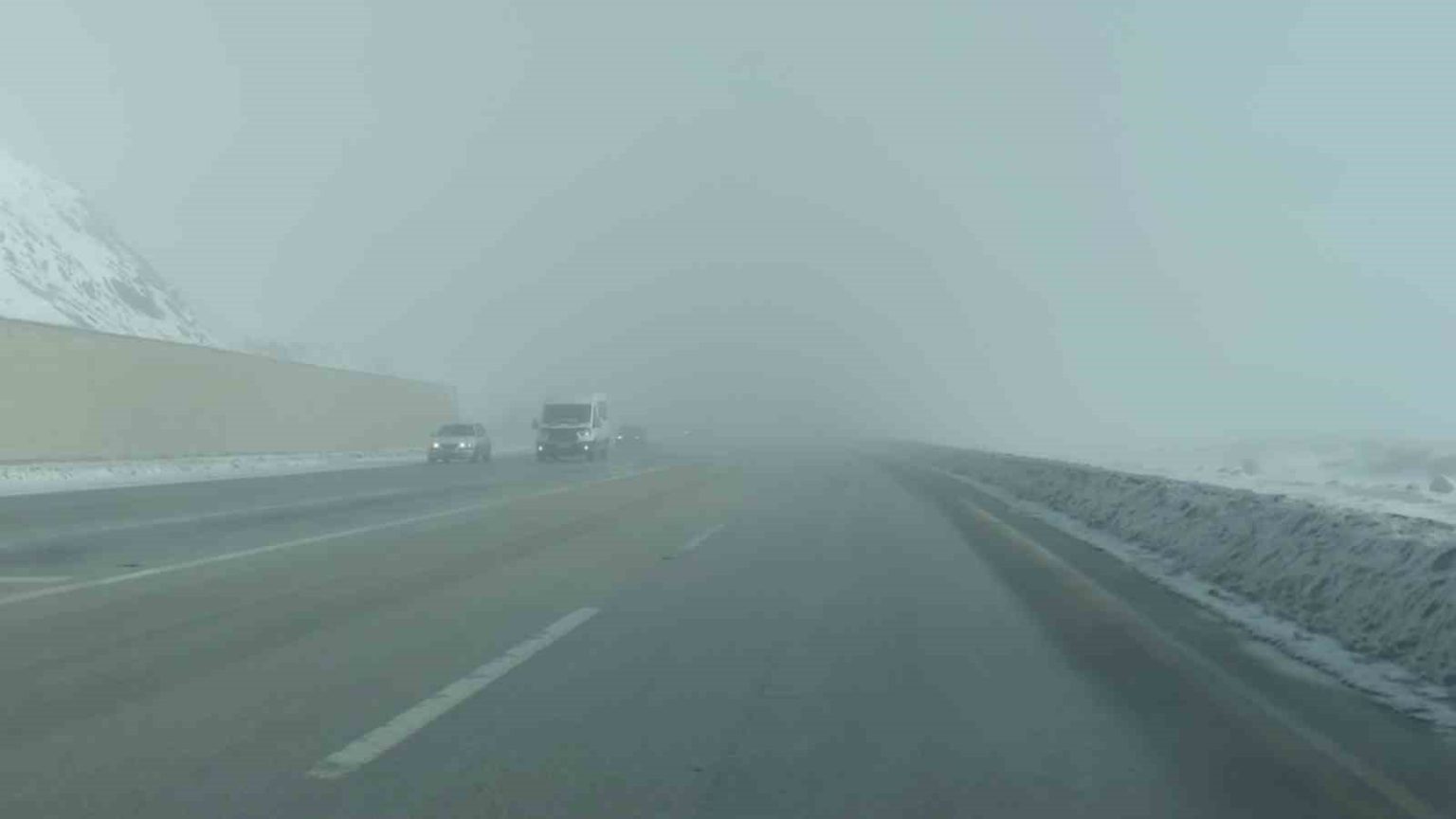 Van-Özalp kara yolunda sabah saatlerinde etkili olan yoğun sis, görüş mesafesini 30 metreye kadar düşürerek sürücülere zor anlar yaşattı.