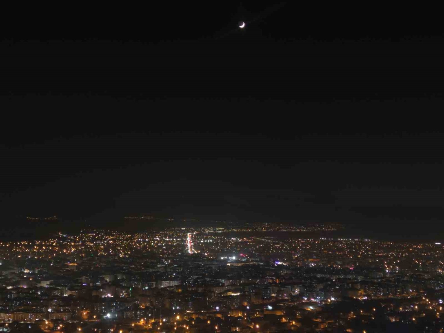 Van’da 2025 yılının son günlerinde gökyüzünde beliren muhteşem hilal manzarası adeta mest etti. Akşam saatlerinde Van Gölü üzerinde yükselen ince ve parlak hilal, kentin kış manzarasıyla birleşerek kartpostallık görüntüler oluşturdu. Van’da yılın son hilal ayı, gece saatlerinde kentin ışıklarıyla buluşarak görsel şölen oluşturdu. Gökyüzünde beliren ince hilal, şehir silueti ve ışıklarla birleşince ortaya etkileyici manzaralar çıktı.